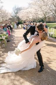 Malone wore a stunning Carriage House gown adorned with delicate floral accents, perfectly echoing the springtime theme.