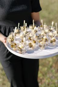 [field title=”Food & Drink”]R Table Catering expertly handled the cuisine throughout the entire day, beginning with a thoughtfully prepared breakfast spread to start the morning. The spread featured an array of homemade pastries—flaky croissants, fruit-filled danishes, and buttery scones—served alongside seasonal fresh fruit, yogurt parfaits, and artisan coffee. It was the perfect light and welcoming start to the day. During cocktail hour, guests enjoyed a variety of passed appetizers—perfectly crafted bites that paired beautifully with the drinks and mingling. For the main meal, R Table served a generous and flavorful Mediterranean spread centered around tender, seasoned chicken and a savory beef option, both complemented by vibrant sides including roasted vegetables and a refreshing orzo salad. The fresh ingredients and bold flavors highlighted the best of the region’s cuisine, leaving guests satisfied and impressed.[/field]