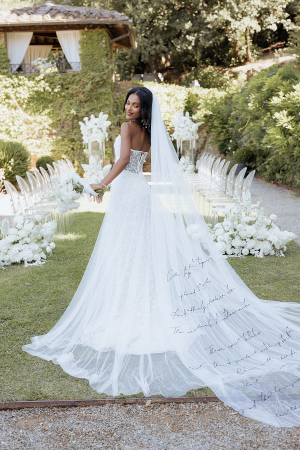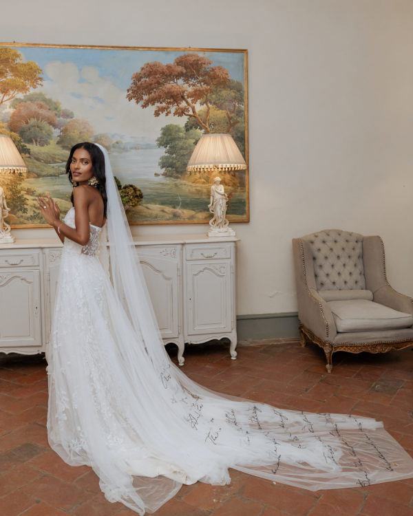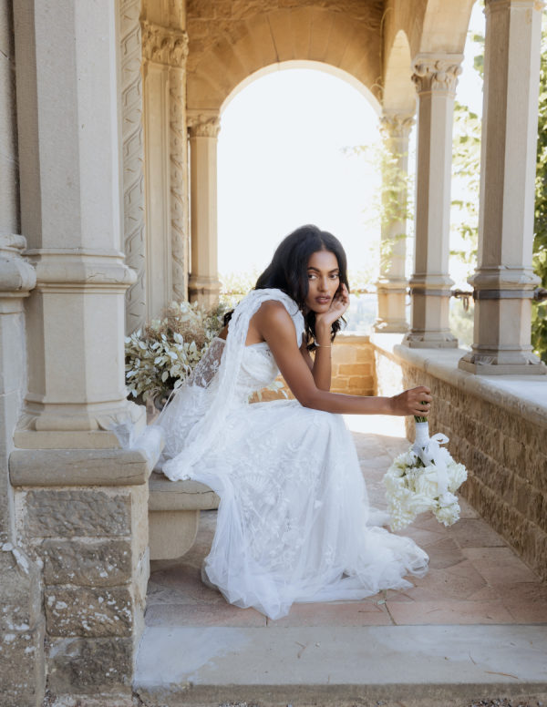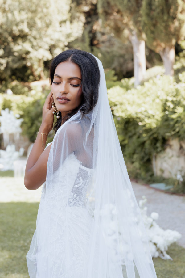 Paired with it was the most ethereal veil by @rebeccaannedesigns, adorned with soft embroidery that caught the light like whispers of poetry. It floated behind the bride like a quiet dream, adding that perfect hint of softness and soul. Together, the gown and veil were the heart of the editorial’s visual language—refined, editorial, and deeply romantic.[/field]