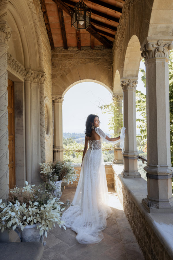 This shoot was all about capturing that romantic, old-world feeling you get when you’re walking through the streets of Europe—where history and beauty are woven into every corner. The vision came together through such a creative and intentional team, and being at Villa Le Fontanelle felt like stepping into a dream. From the textures to the light, every detail was designed to reflect something timeless but still deeply alive and emotive.