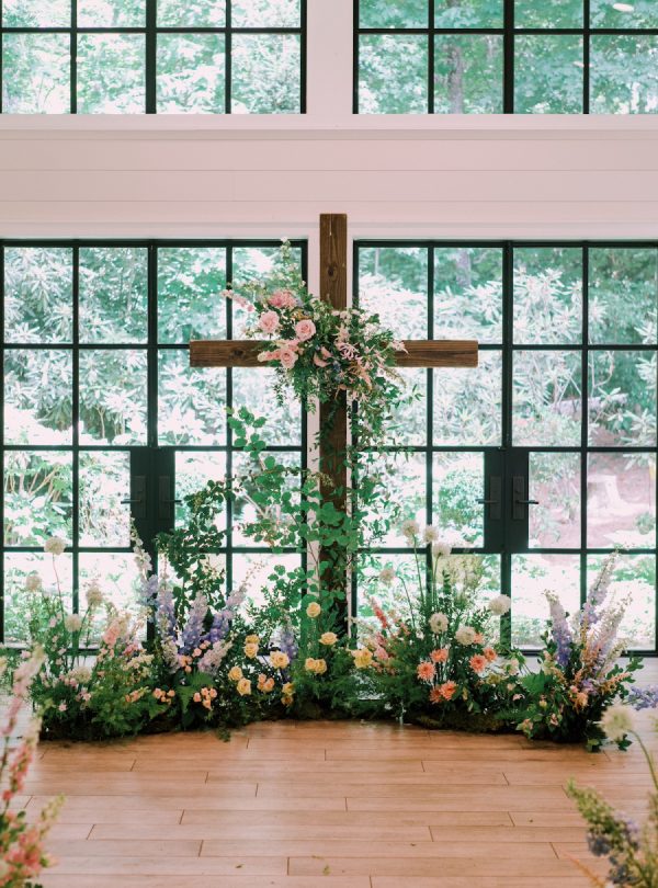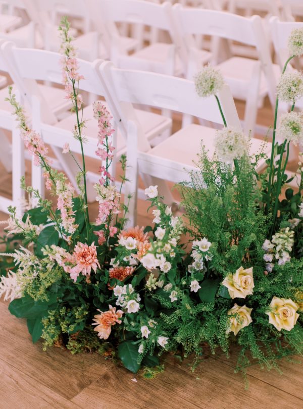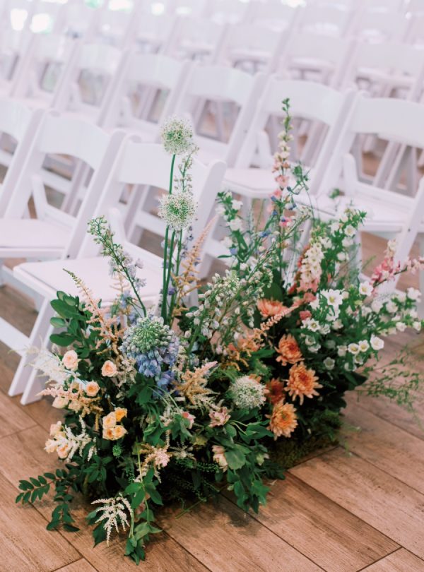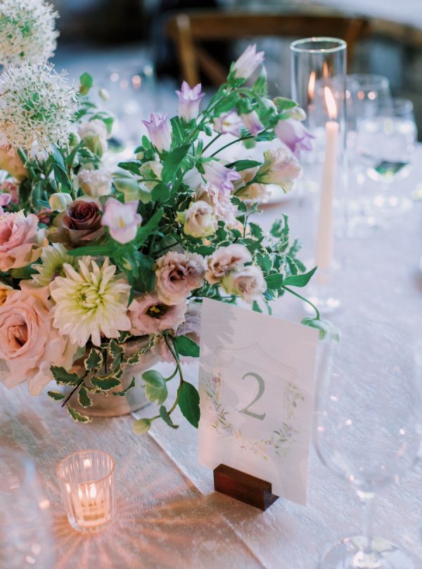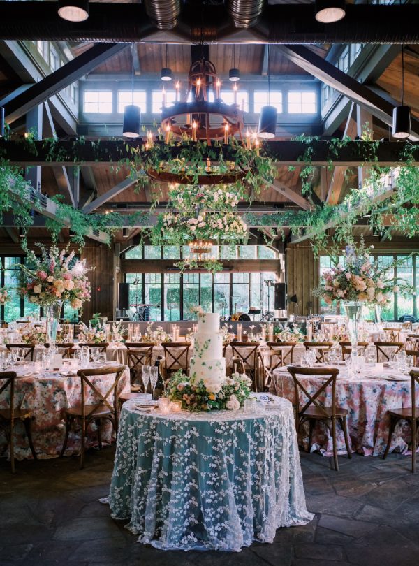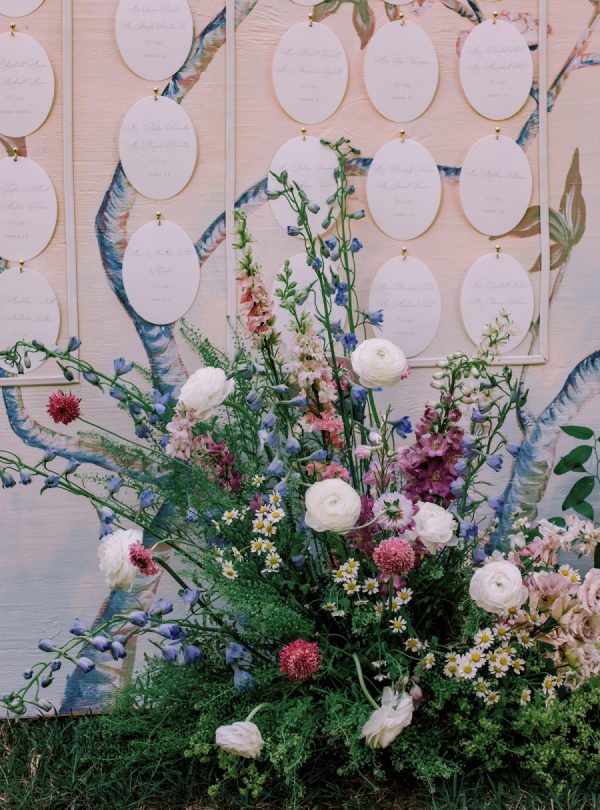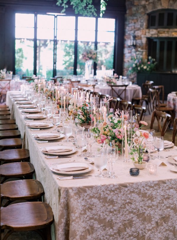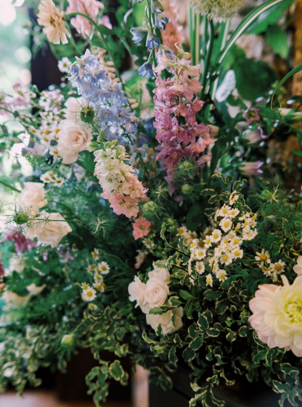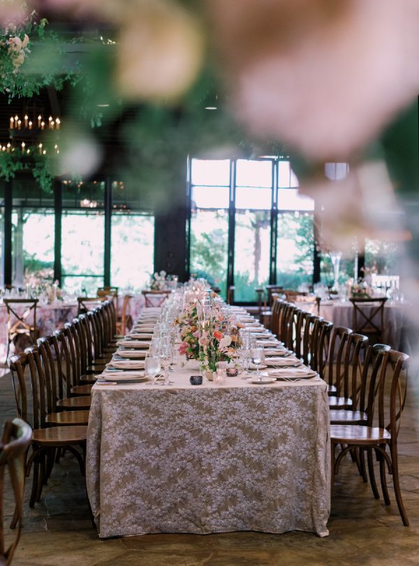 The floral design leaned into natural, gathered arrangements that looked like they had been plucked straight from the Highlands. Printed linens, vintage place settings, and layered textures added dimension and personality to the overall look.