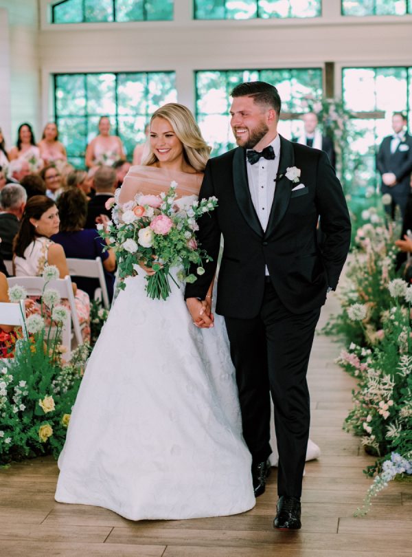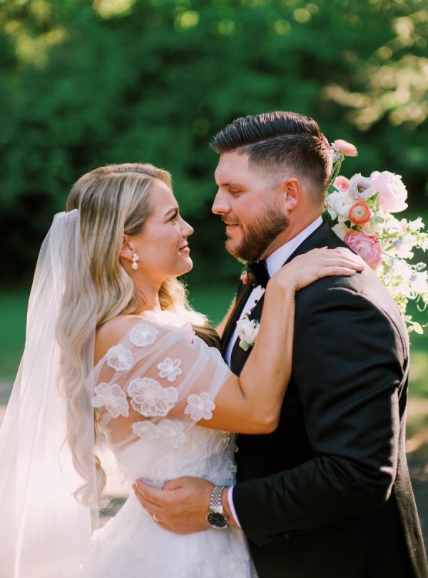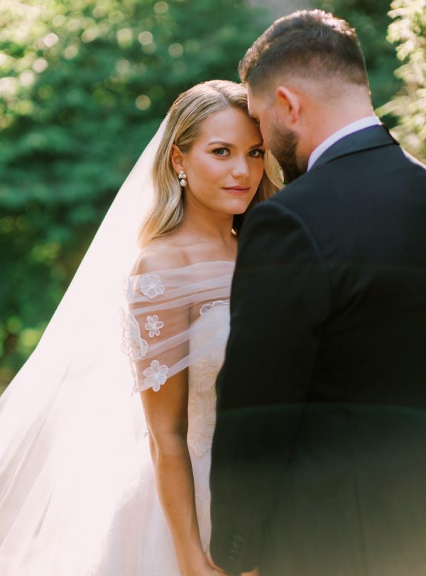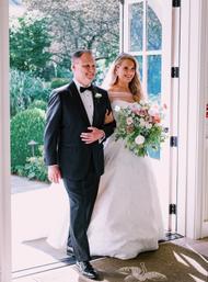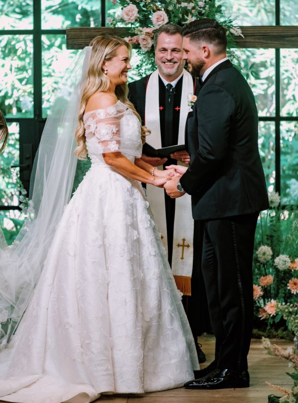 Caroline wore an Anne Barge gown designed just for her, blending classic bridal elegance with custom details that reflected her personal style.