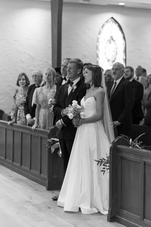 [field title=”Wedding Gown”]Madden wore a striking taffeta ballgown that perfectly balanced drama and simplicity. The gown featured sculptural ruching across the bodice, adding texture and a modern twist to the classic silhouette. It was a statement piece that felt both timeless and entirely her own.