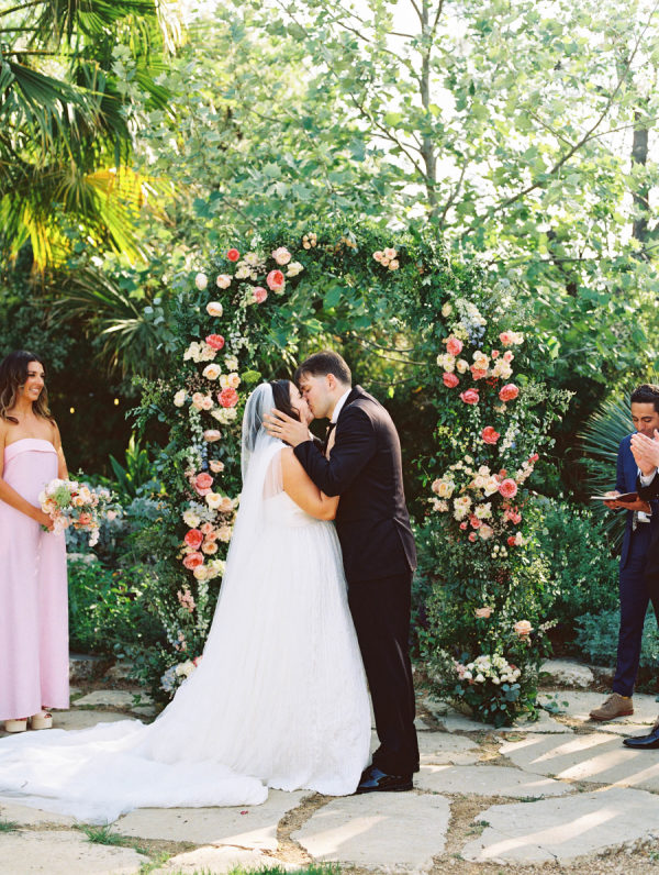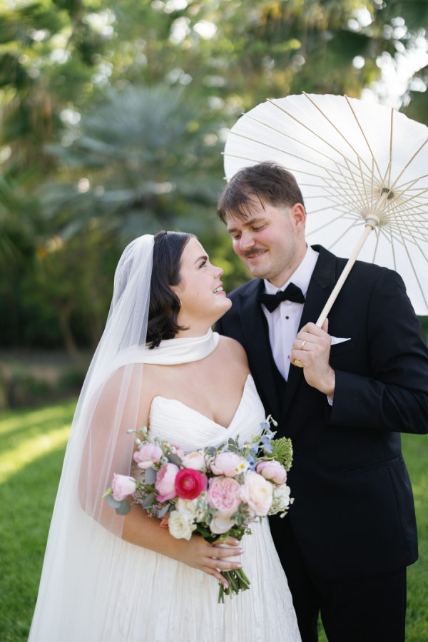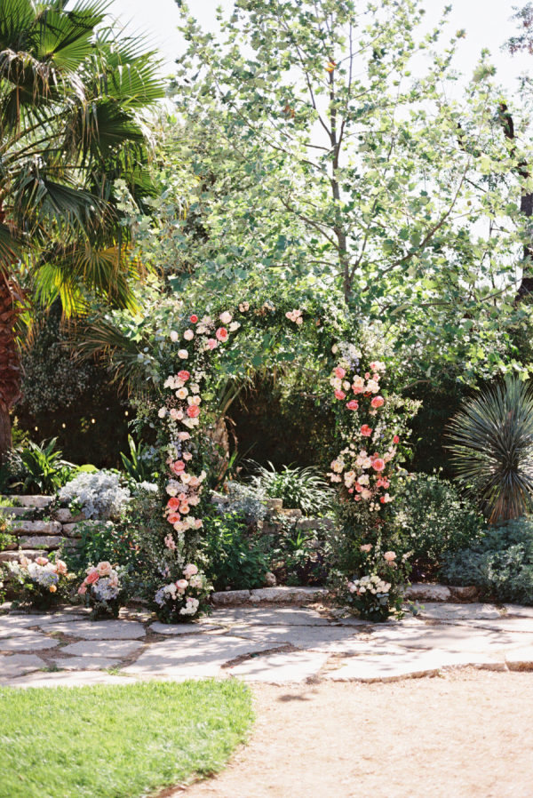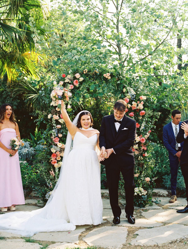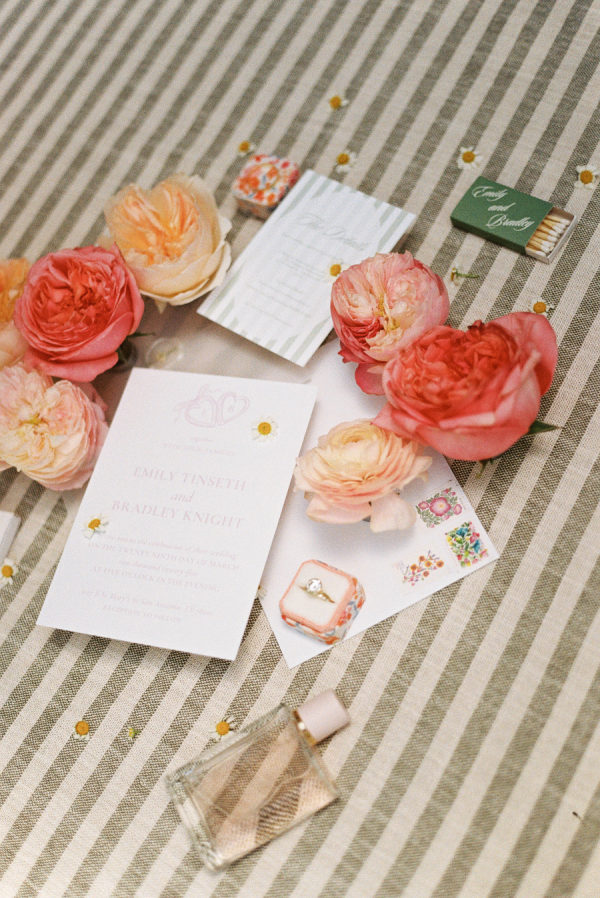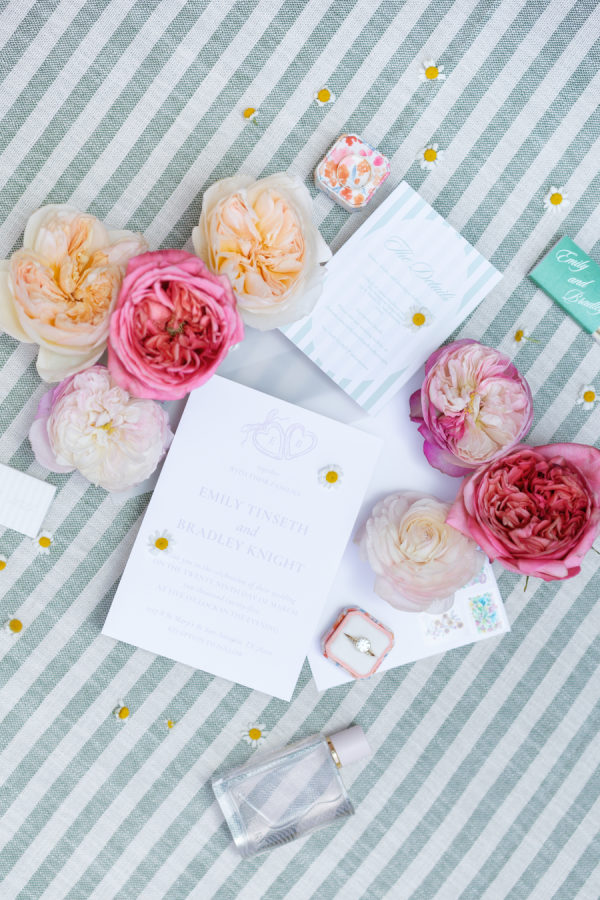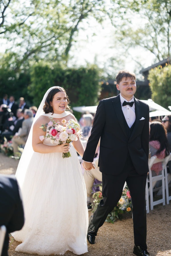 The florals were a vibrant celebration of spring—lush, romantic, and full of personality. Ranunculus, garden roses, and delicate chamomile blooms took center stage, creating a playful mix of texture and color. The arrangements featured a palette of blush, peach, soft yellow, and pops of raspberry and coral, echoing the joyful energy of the day. From the bride’s bouquet to the custom floral dance floor, every bloom felt intentionally placed to enhance the garden party atmosphere with fresh, whimsical charm.