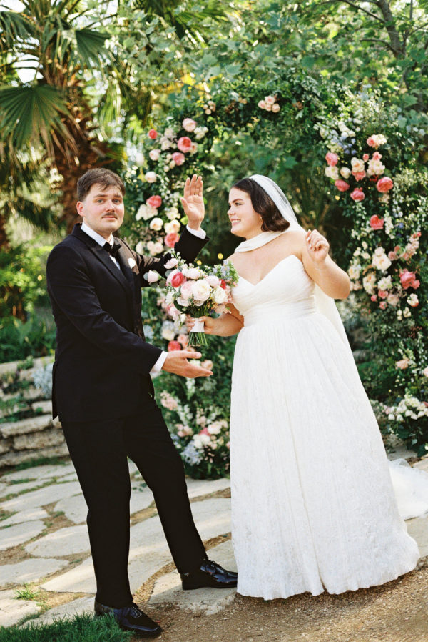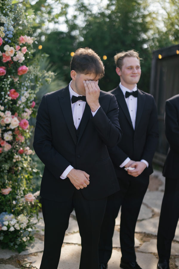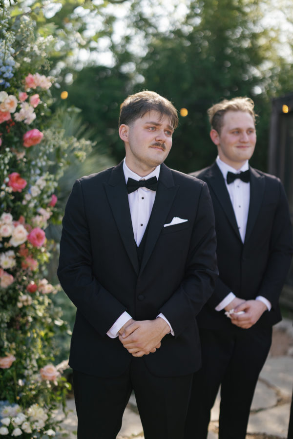 The groomsmen kept it timeless in classic black tie, bringing a touch of formal elegance that perfectly balanced the playful garden party aesthetic. Their sharp, tailored looks added a sophisticated edge to the day’s otherwise whimsical vibe.