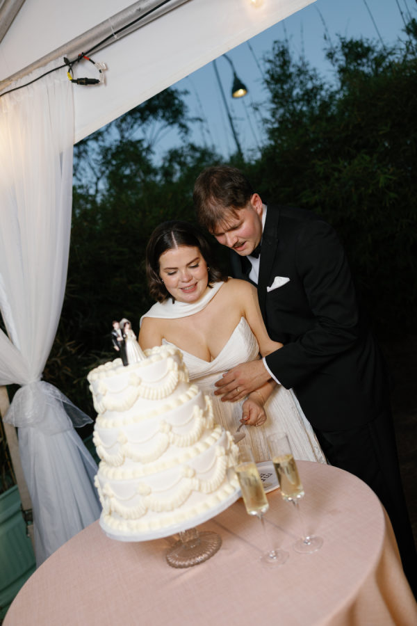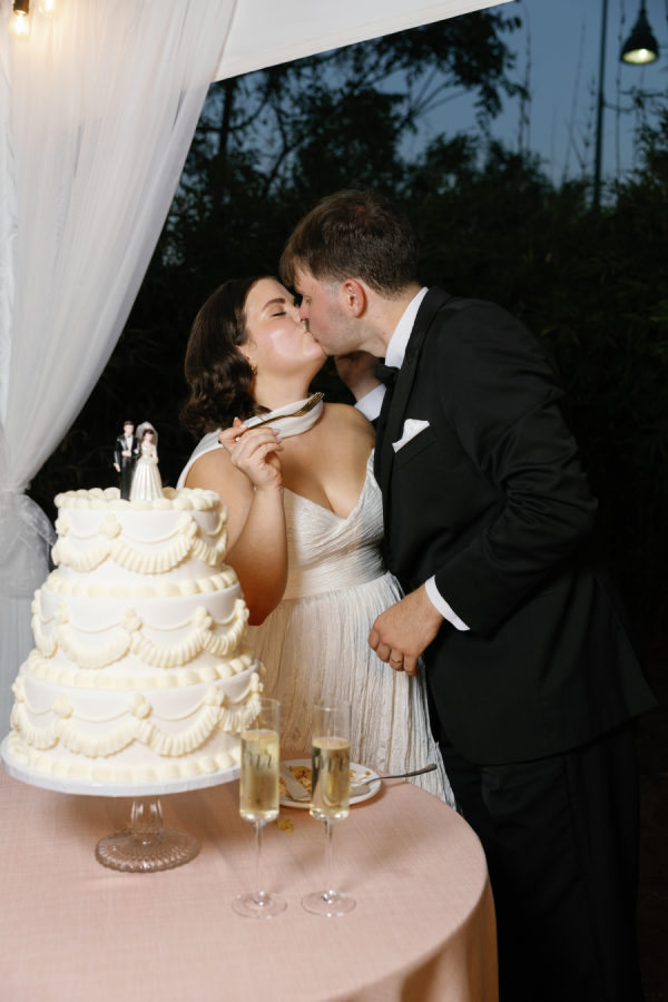 [field title=”Wedding Cake”]The couple opted for a classic tiered wedding cake, keeping things timeless and elegant—with a playful twist. Topping it off was an adorable figurine of the bride and groom, adding a lighthearted, personal touch that perfectly reflected their fun-loving spirit.[/field]