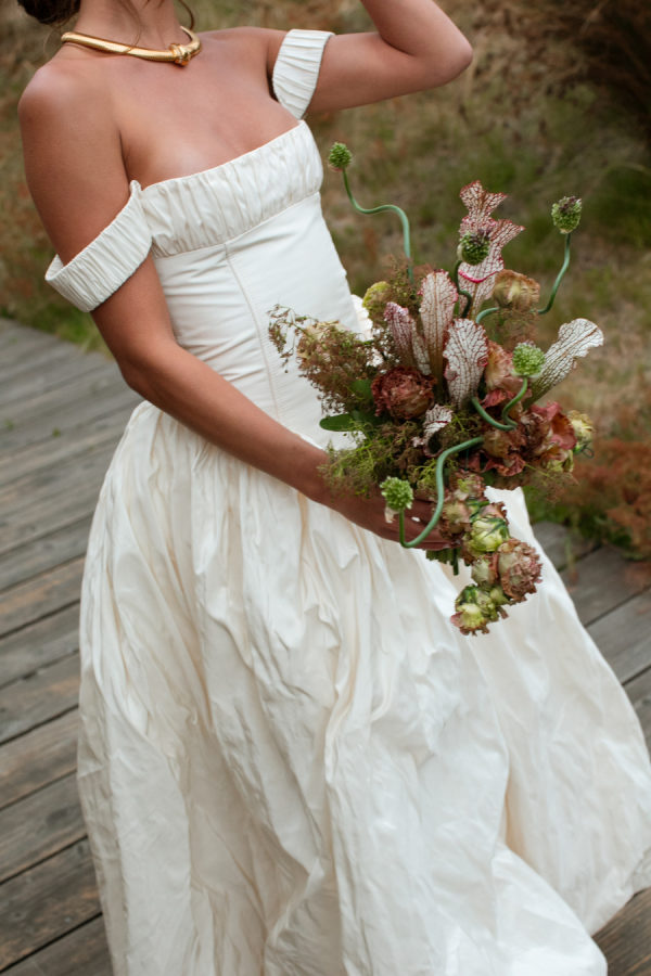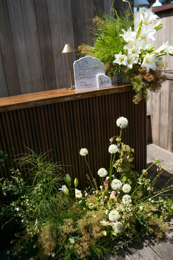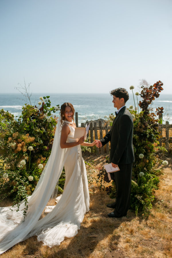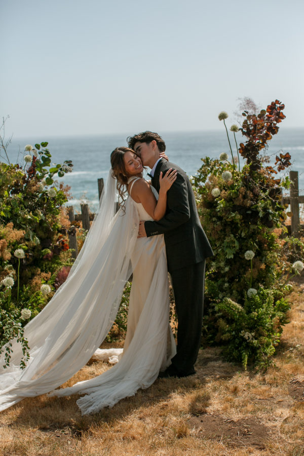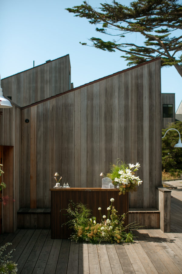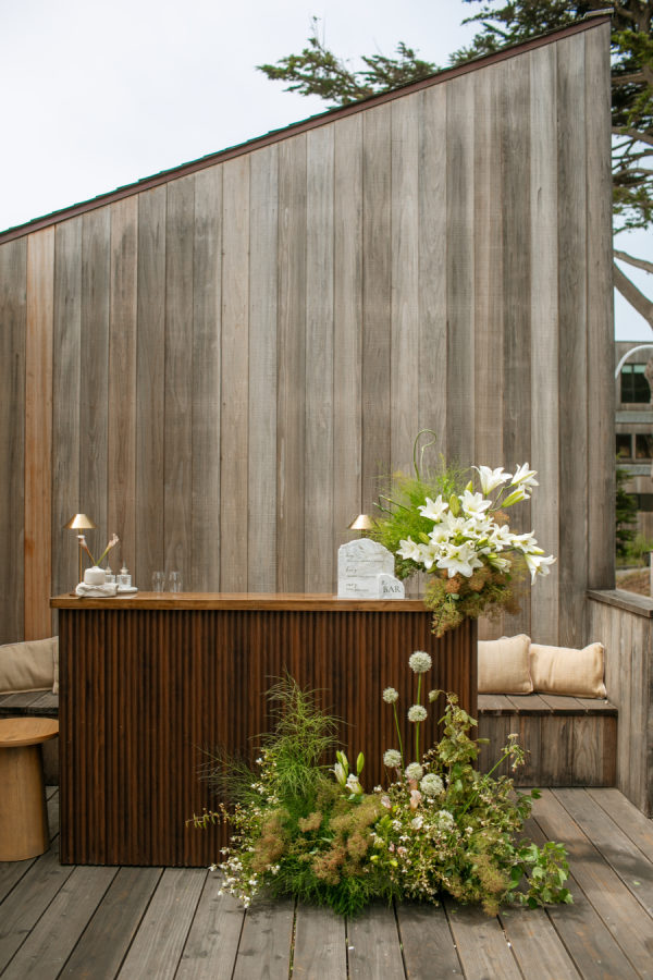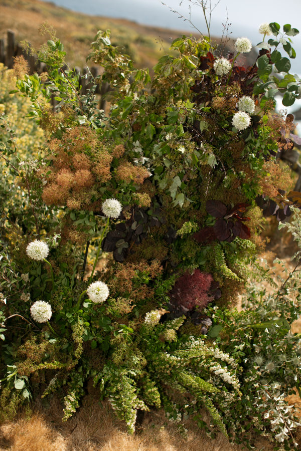 Ash and Oak created lush florals that mimicked the natural beauty of The Sea Ranch, with green, warm golds, and whites. Natural grasses were incorporated into the blooms, which gave a natural, earthy aesthetic to the floral designs.