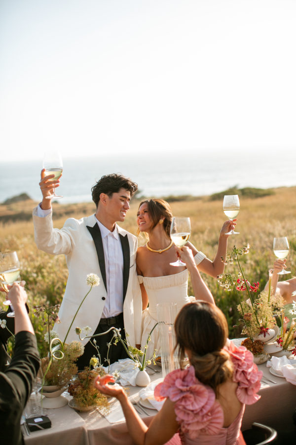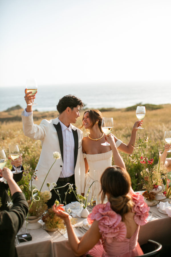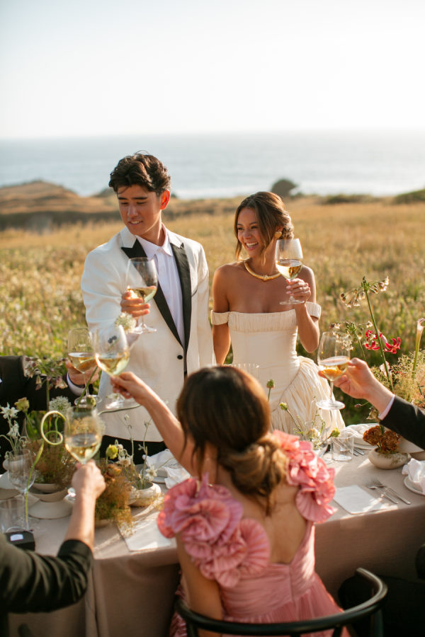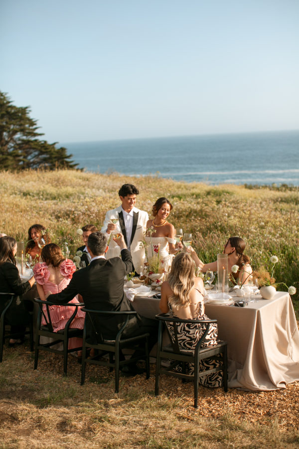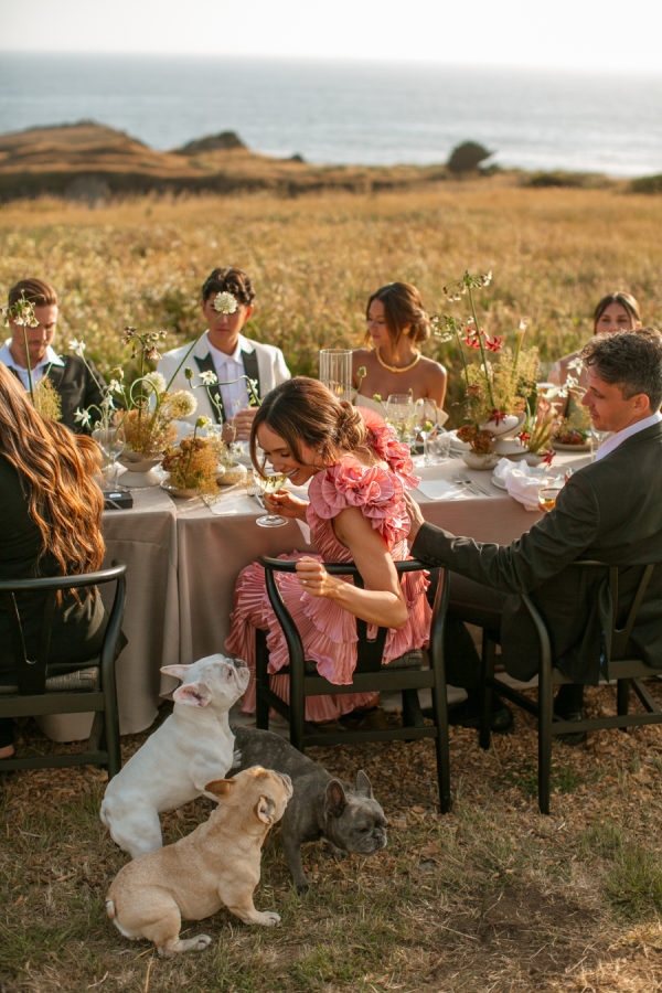Photography: Nichols Photographers | Event Planning: Nicole Blair Events | florist: Ash + Oak Florals | Cake: Cake by Jamie Li | stationery: The Jess Press | Reception Venue: Sea Ranch Lodge | Shoes: Jimmy Choo | Shoes: Loewe | Shoes: Manolo Blahnik | Bridesmaids’ Dresses: Macduggal | Make Up: Ladida Makeup Artistry | Make Up: Shimmer + Gloss | Hair: Bridal Hair by Tara Meghan | Suits: Regard Style House | BTS: Jannet Photo | Content Creator: Emzy Choi | Dogs: Frenchies Snort Couture | Event Production: Wedvibes | Model- Guest Couple: Alva and Amor | Model-Guest Couple: Model Couple SD | Models- Main Couple: Mara and Wyatt | Perfume: Cotton Lifestyles | Rentals: Ventura Party Rentals | Suite: Paisley And Grey | bar: Mitik Bartending | dresses: Cinq | stylist: El Delgadillo