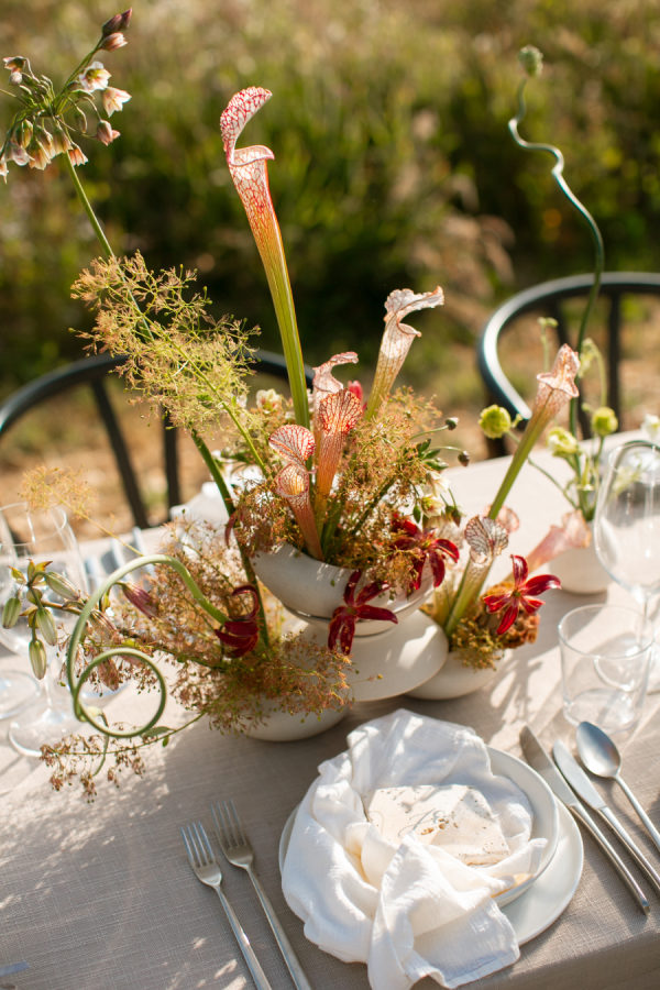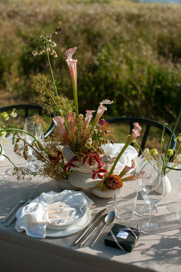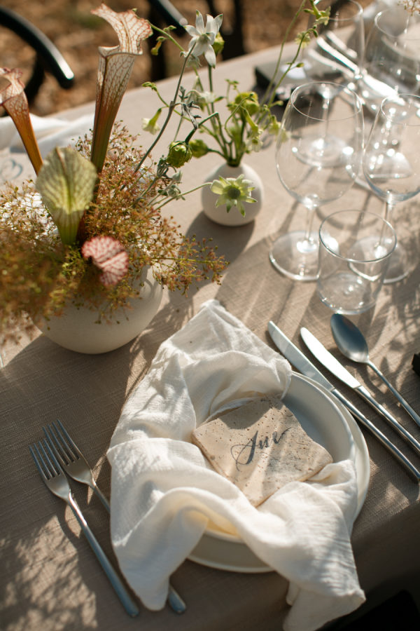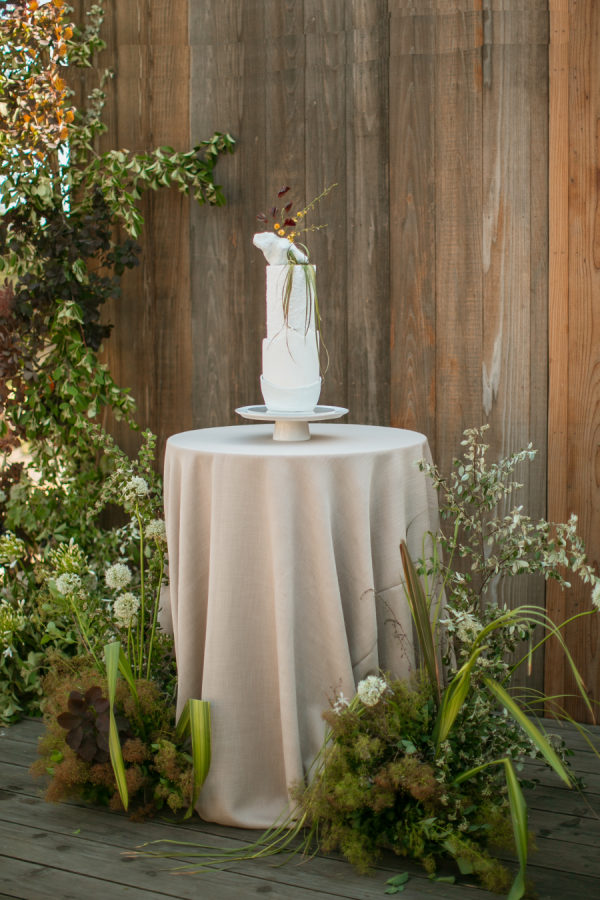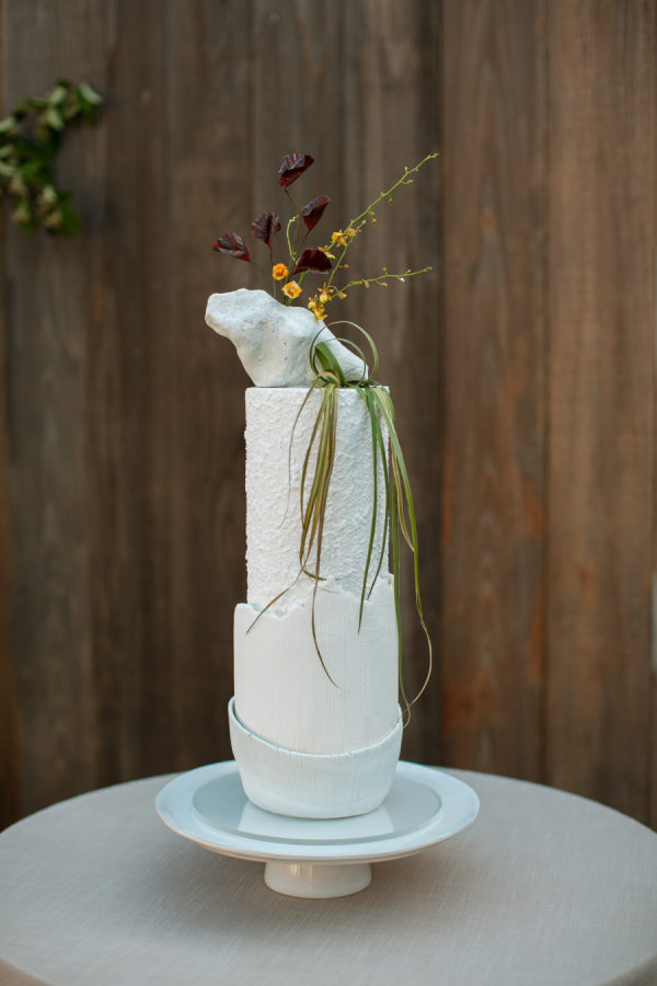 The cake, designed by Cakes by Jamie Li, was a favorite. She created a modern sculpture with her design, which maintained a natural, minimalist sensibility that perfectly complemented the setting and wedding design. And it was also delicious!