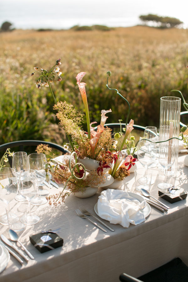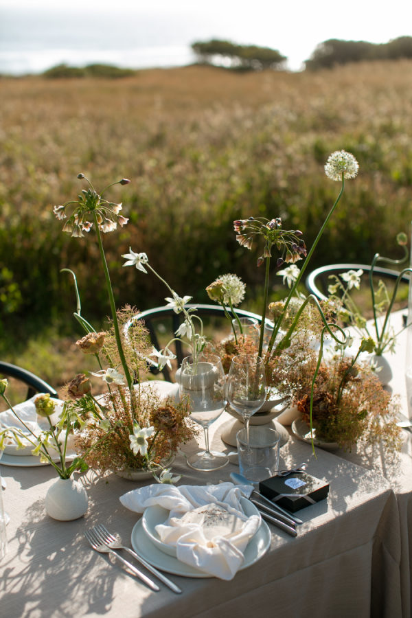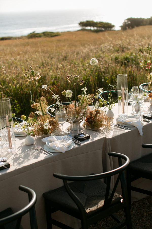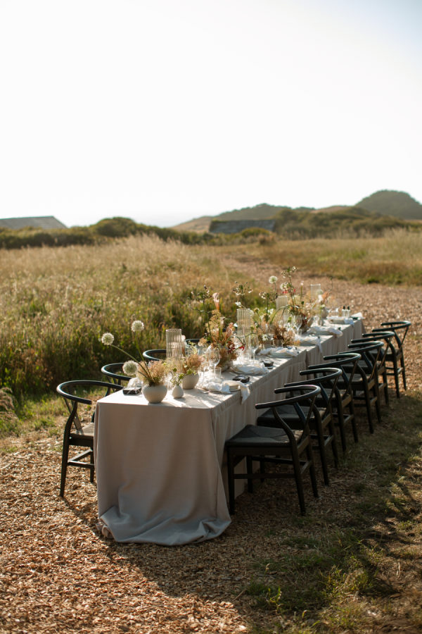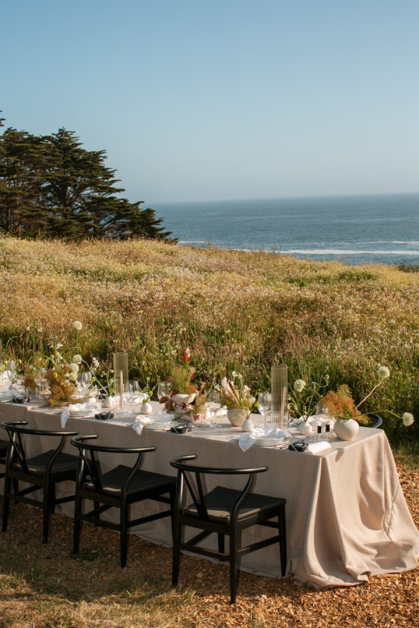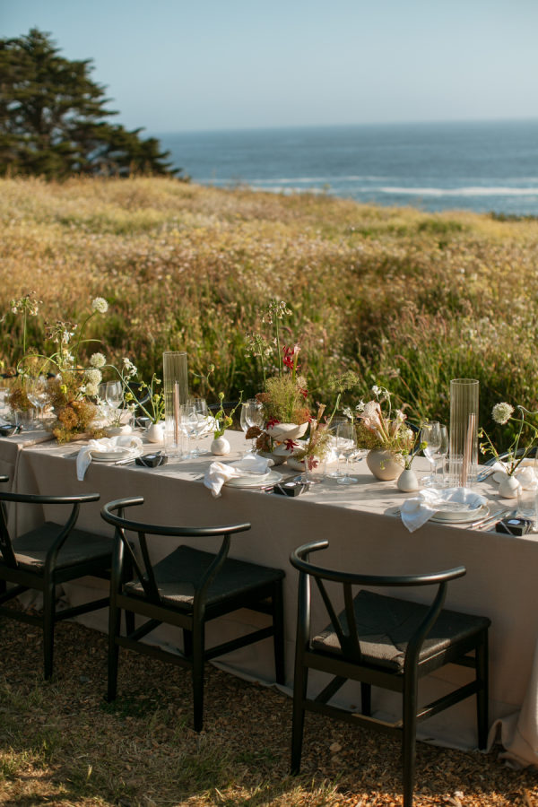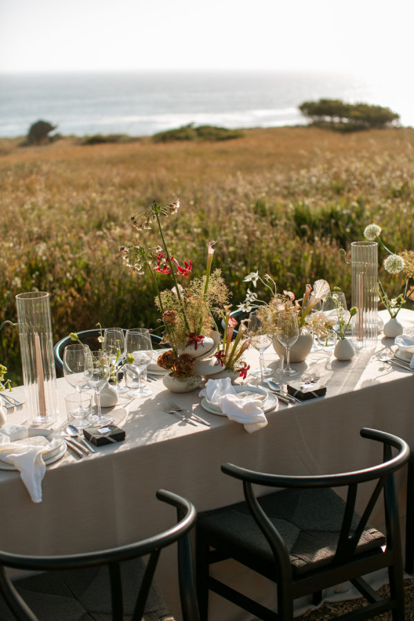 This editorial, produced by WedVibes, was designed as inspiration for couples who dream of getting married on the beautiful Sonoma Coast. Aesthetically, the vendor team wanted to showcase a love story set within the romantic landscape of the Northern California coast, with decor that echoed the natural elements of The Sea Ranch. This was an inspiration for an intimate celebration of your closest friends and family, surrounded by the stunning natural landscape of the California Coast.