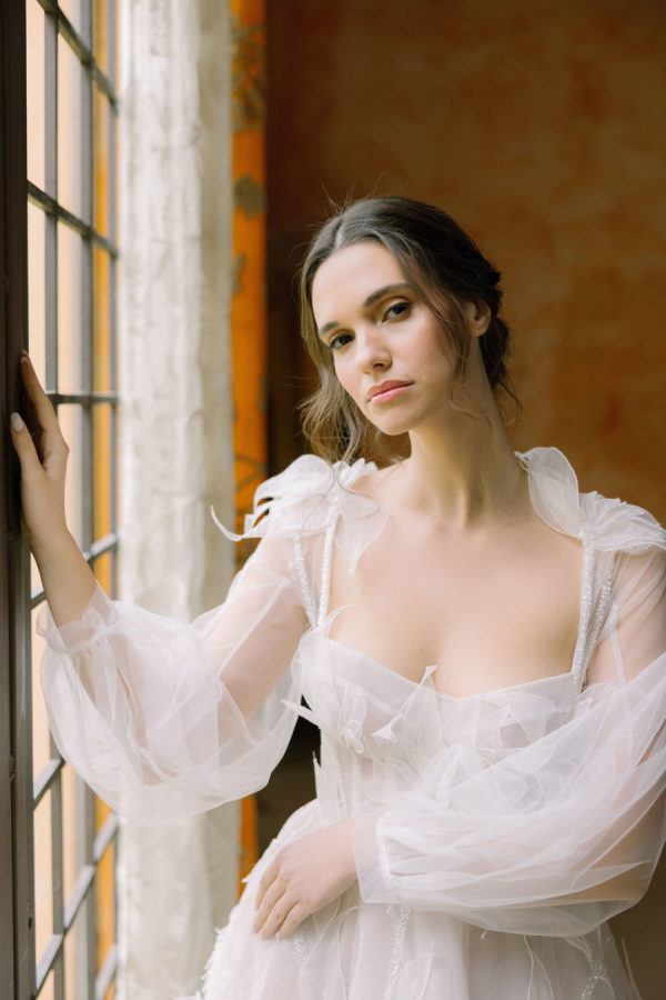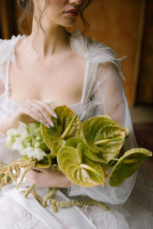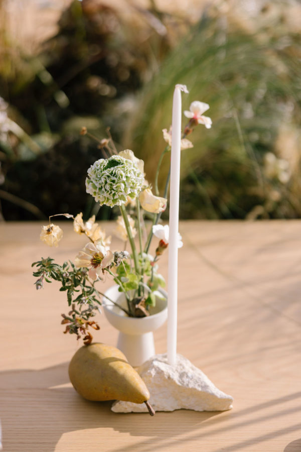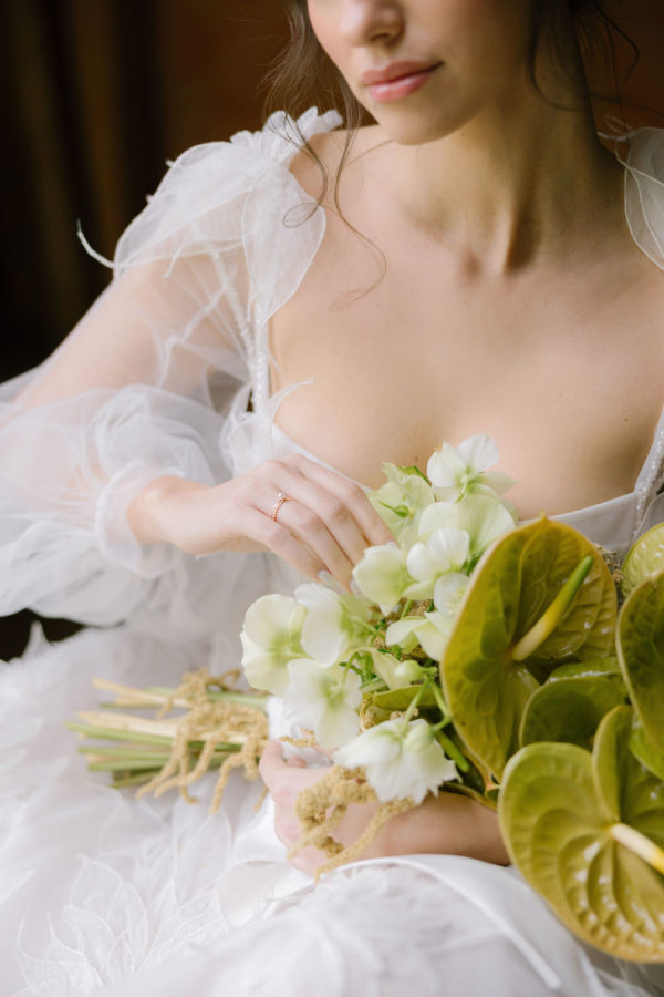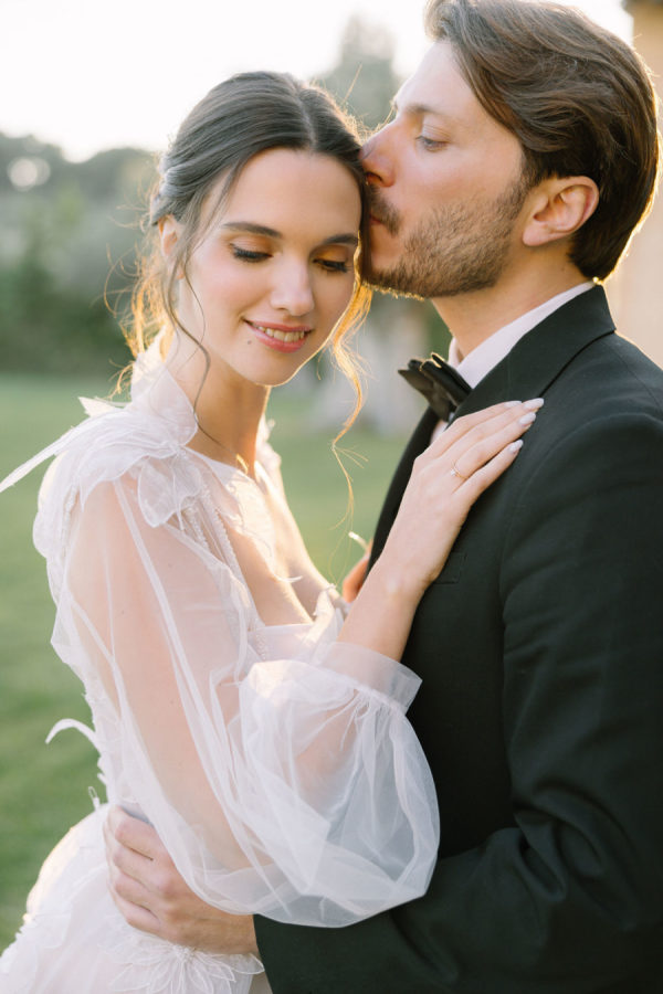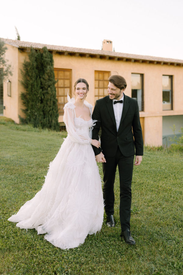 [field title=”Wedding Colors”]The floral design played a pivotal role in bringing this vision to life. We chose natural, organic flowers in a palette of earthy tones, soft blushes, and deep greens, adding a subtle yet dramatic touch to the setting. Inspired by Tuscany’s effortless charm, the ceremony space was adorned with “clouds” of delicate floral arrangements, carefully layered for depth and movement. Scattered stones, church-thin candles, and fresh fruits completed the aesthetic, evoking the romance of an old-world European celebration.[/field]