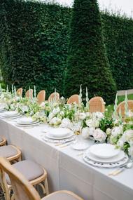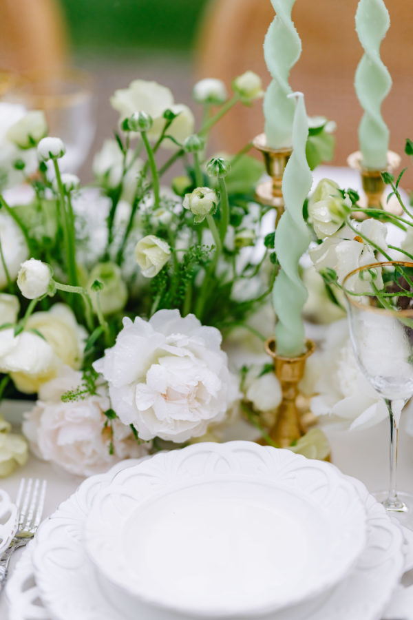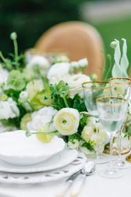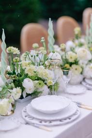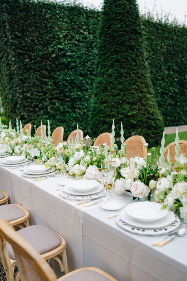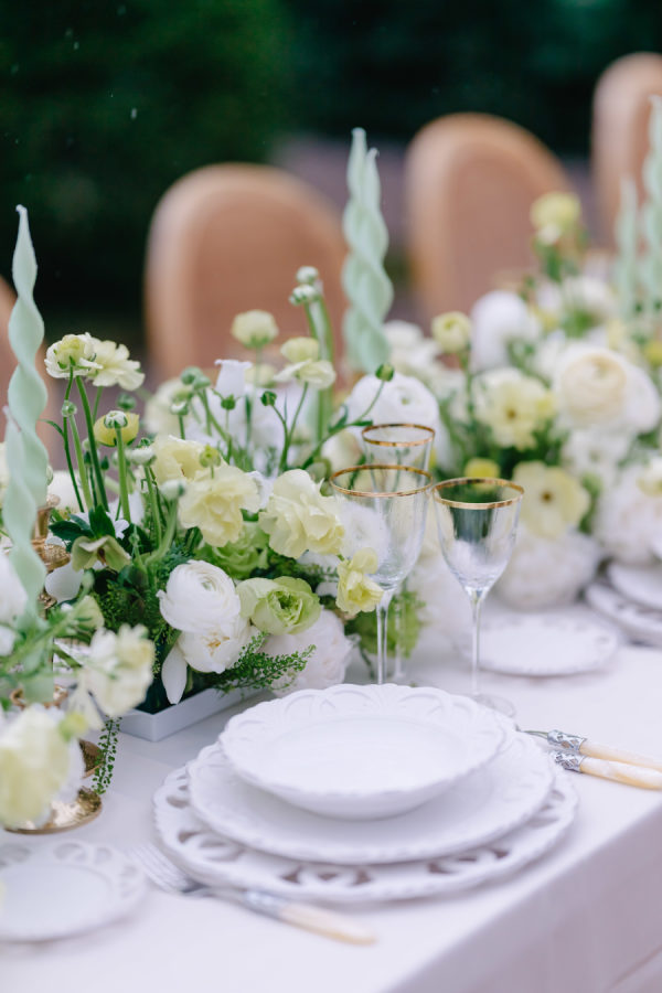 Neutral hues with a focus on green and white anchored the aesthetic of the day. A few soft, rosy touches were delicately integrated into the ceremony arch, adding a subtle note of joy without disrupting the overall restraint of the design.