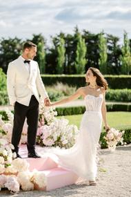 The inspiration behind this editorial wedding shoot at Château de Tourreau was to create a blend of timeless elegance and modern flair. Surrounded by the grandeur of Provençal architecture and lavish gardens, each scene was designed to evoke feelings of luxury and romance. Drawing from classic European influences, we aimed to capture the essence of opulence through carefully curated floral arrangements, exquisite fashion styling, and a sophisticated table setting. The result is an editorial that feels both regal and fresh, embodying the spirit of a modern fairy tale in the heart of Provence.
