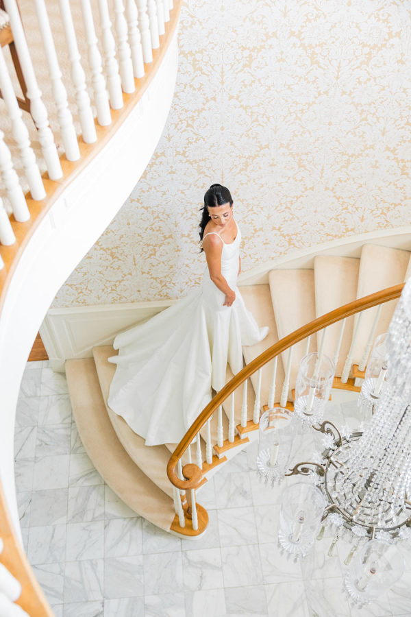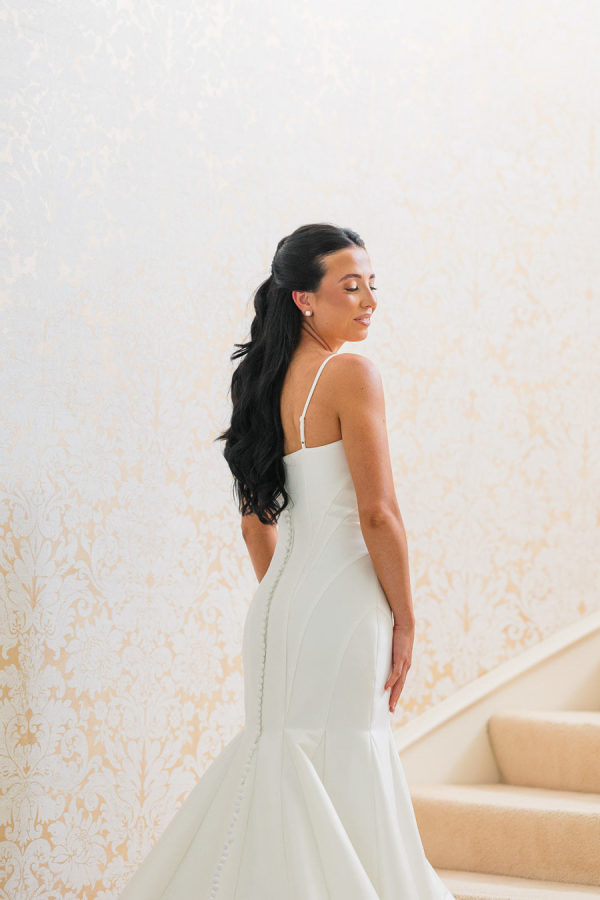 Elizabeth’s gown from Angolique bridal perfectly complemented her petite figure and showcased her elegant taste. When she put on her gown as the fourth dress in the line-up, she says she “just knew” and didn’t want to try on anything else.