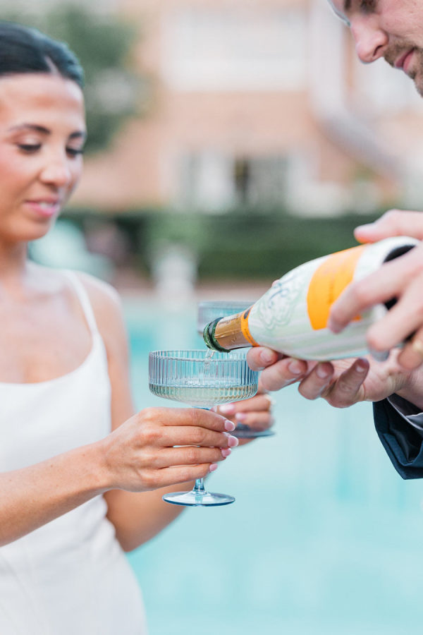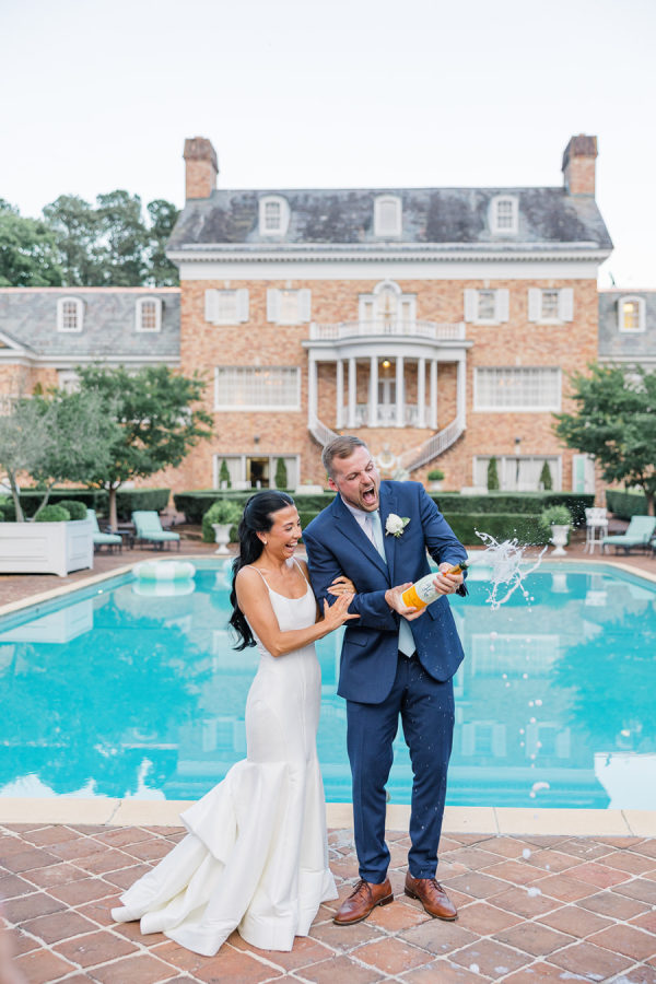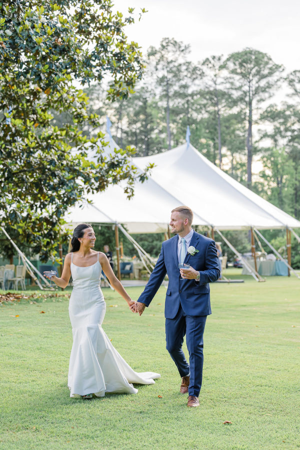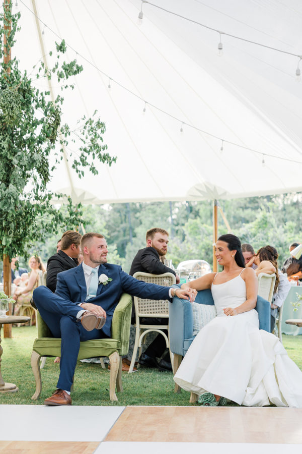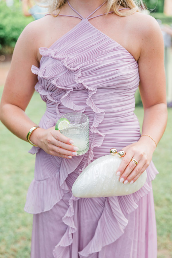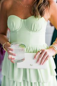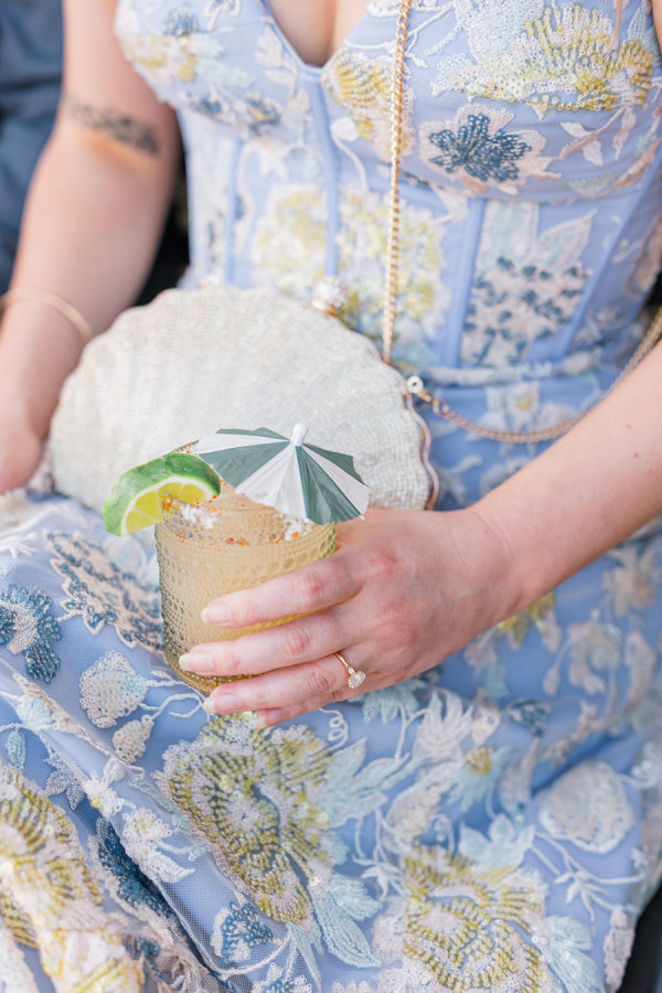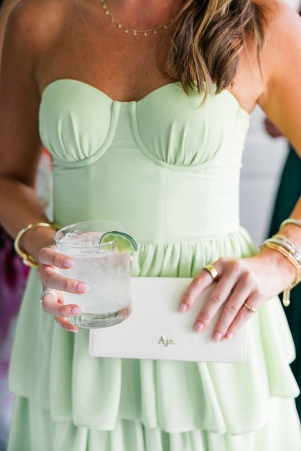 One of our favorite aspects of Elizabeth’s wedding was her curated stationery. Her custom scallop menu cards with watercolor-scripted names at the top were one of a kind. And her umbrella Lake Day invitation, combined with vibrant invitation suite elements, set the tone for the whole weekend.