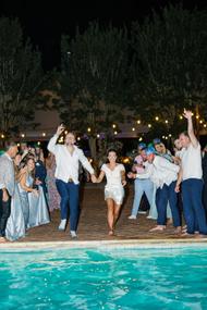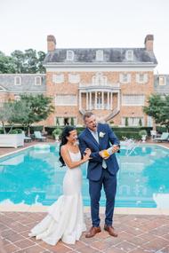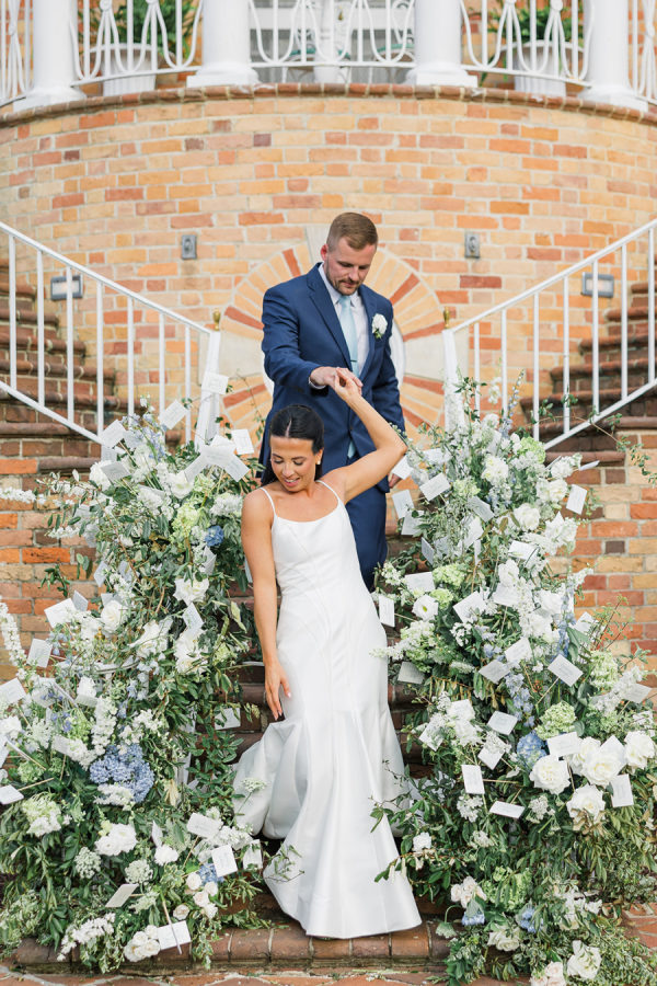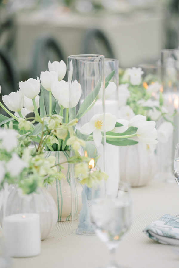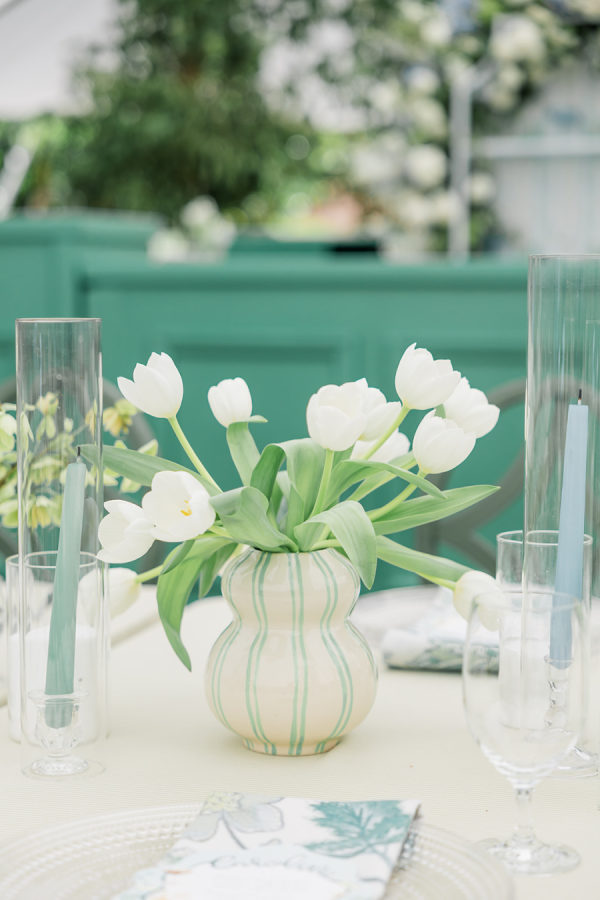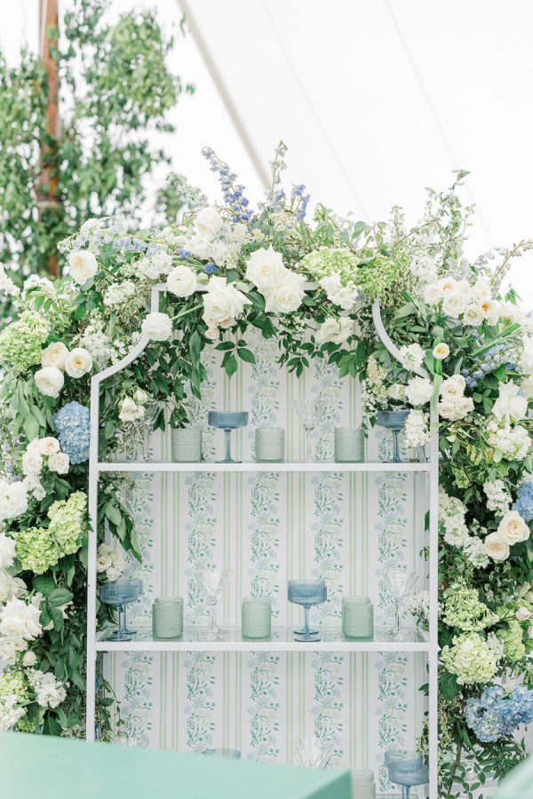 The vision behind Elizabeth’s wedding design was playful elegance – bringing a modern twist to an elevated garden party. We took the classic blue and green palette to the next level with a pop of fresh teal, and married several underlying motifs: scallops, stripes, florals, and dots. Every element blended so harmoniously for an indescribably perfect wedding day for Elizabeth and Chase.