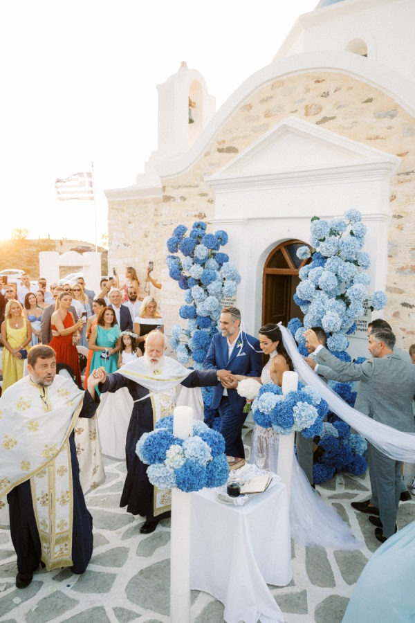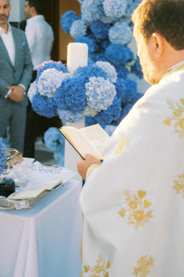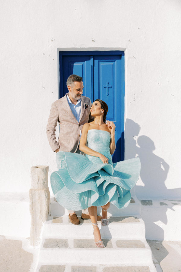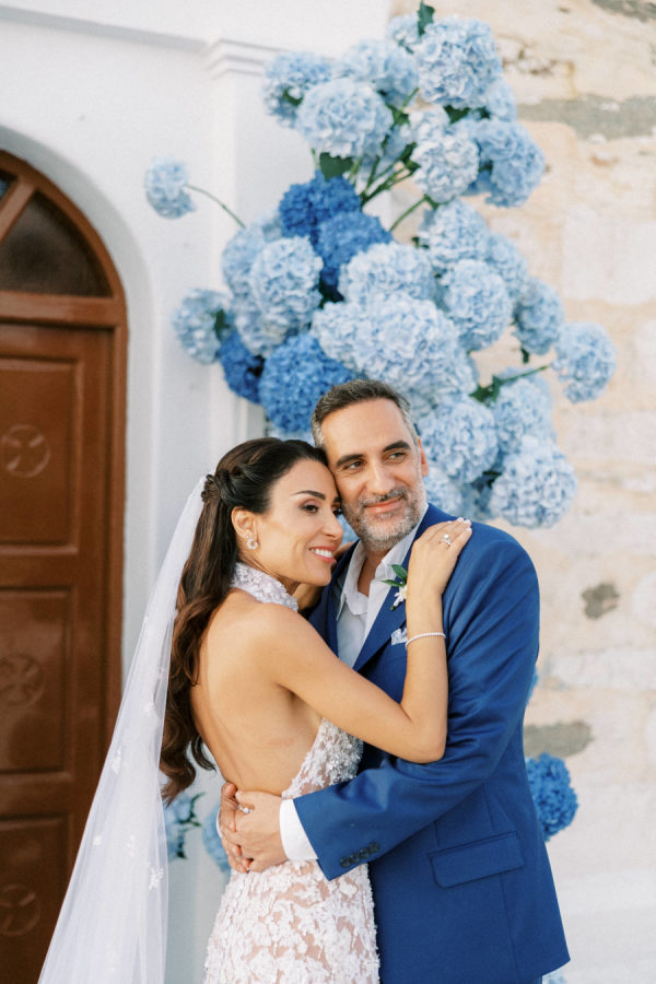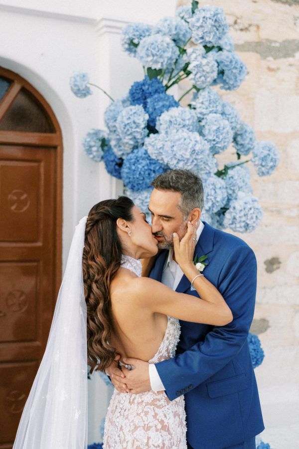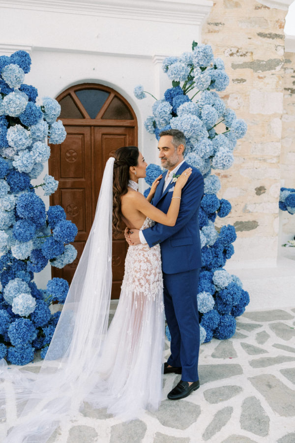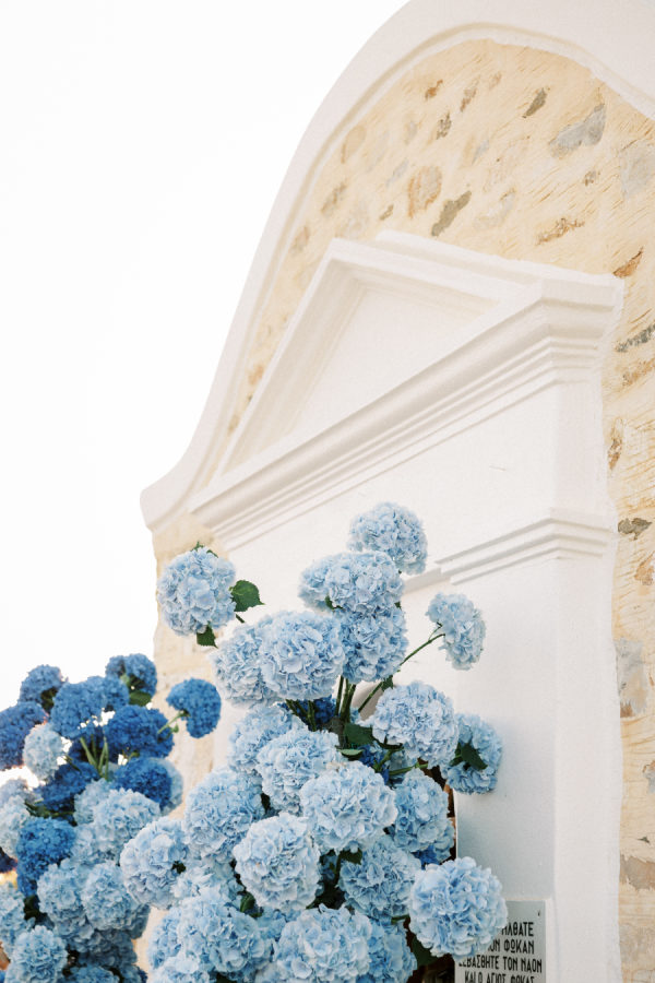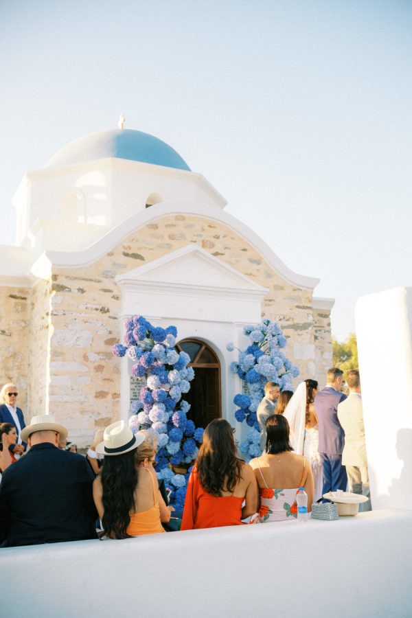 The wedding’s palette was a masterclass in elegance and Mediterranean vibrance. For the ceremony, the design embraced timeless tones of Aegean blue and crisp white—a direct nod to the iconic Greek island landscape of Paros. As the day unfolded into the evening, the palette transitioned into an ethereal spectrum of pinks—from the softest blush to bold fuchsia—bringing warmth, romance, and a modern touch to the reception setting. This dynamic use of color served as the perfect foundation for a stylish, joy-filled destination wedding in Greece.
