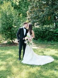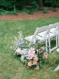 The ceremony was officiated by the groom’s brother. This added such a sweet and personal touch to the ceremony and allowed for personal stories to be shared, full of laughter and tears of joy. The ceremony aisle was lined with lush floral meadow, creating the perfect accent for the wedding party to enter and exit. The arbor behind the couple was also adorned with beautiful florals and greenery.