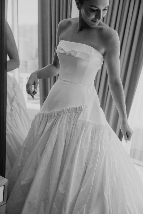 Peter Langner (Lupita) – Alyssa was the first-ever bride to purchase the gown from Wedding Atelier NYC. Her reception gown was by Monique Lhuillier. Shoes were by Christian Louboutin