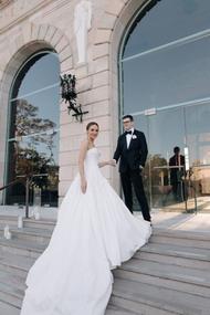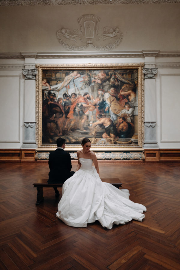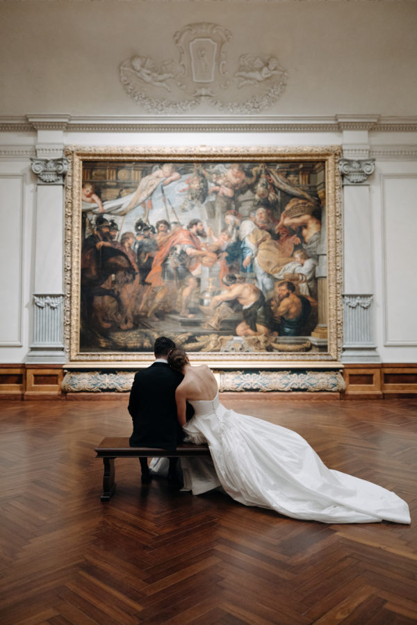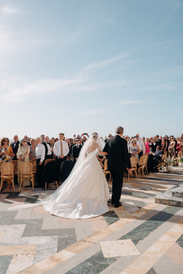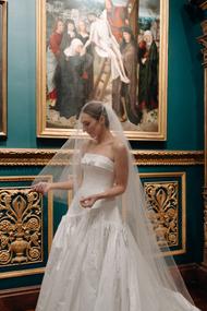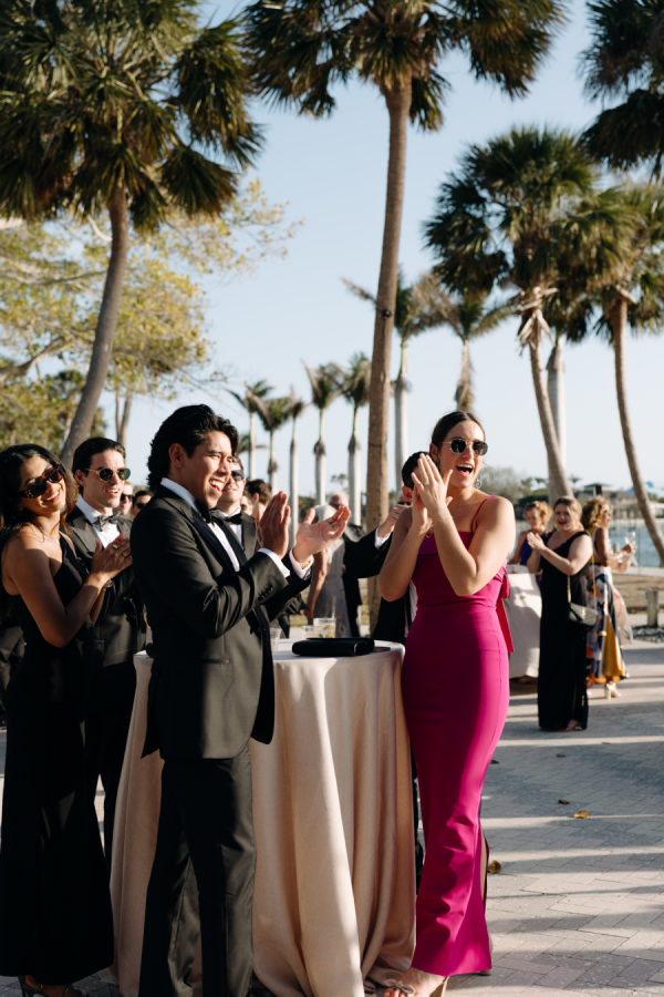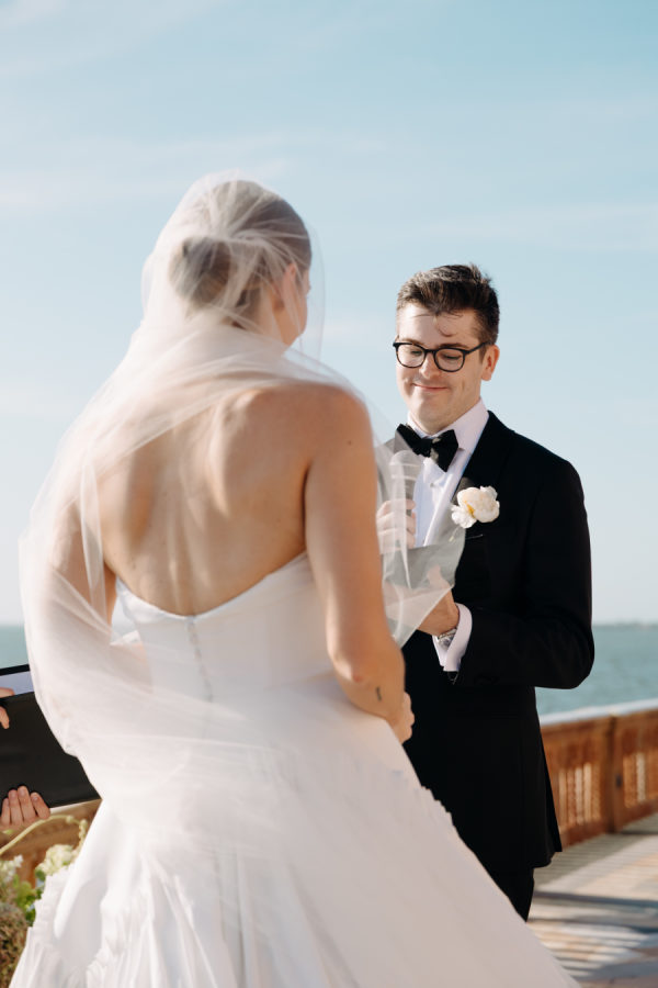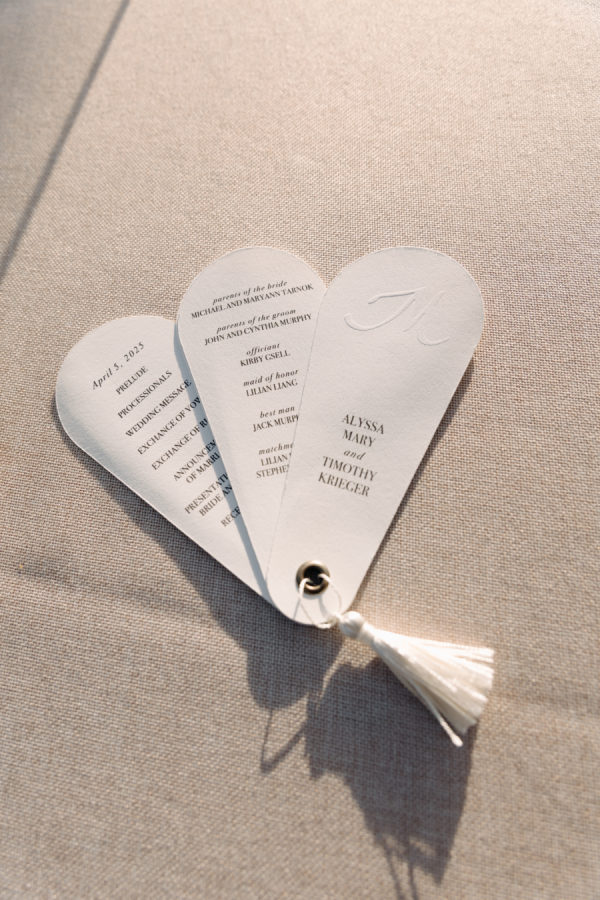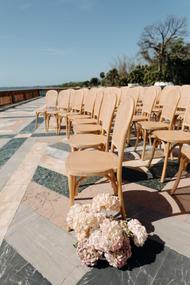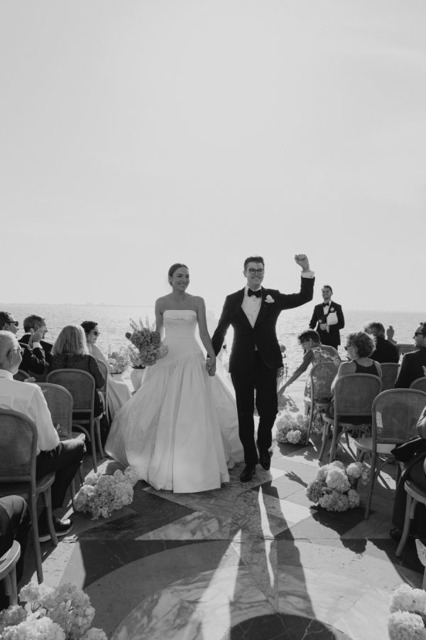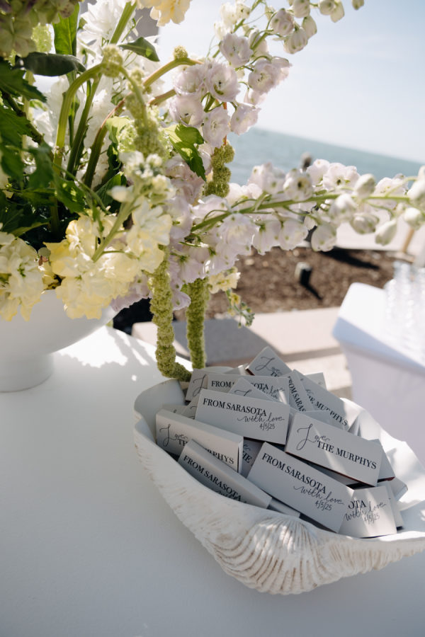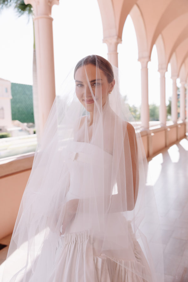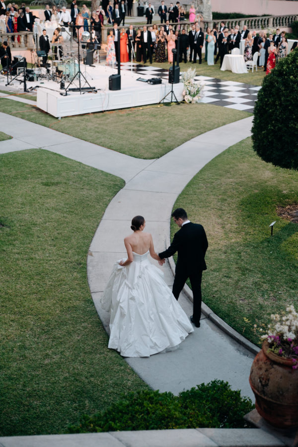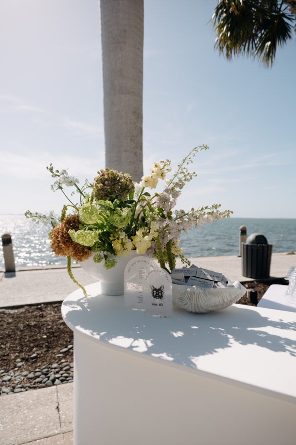 We wanted a wedding which was formal but not stuffy, traditional but memorable! A stateside destination wedding was the perfect fit for us. My (Alyssa) parents spend their winters in Sarasota, and Tim’s (groom) parents spend their winters in Bonita Springs, so we narrowed our search to the Gulf Coast. Luckily, the John and Mable Ringling Museum of Art was right under our noses in Sarasota. Its European architecture felt just as special on our wedding day as it did the first time we saw it — there are “wow” factors everywhere you turn. We didn’t want our decor to detract from (or compete with) the museum in any way, so we kept our decor complementary to each space. At our ceremony, for example, the chairs mimicked the rounded shapes and chestnut colors of the Ca’ d’Zan façade, and the florals emphasized light pink and cream tones in the terrace’s tiles. As a result, we did not have “wedding colors”. The “theme” we were always striving for was more of a feeling. Put as simply as I can, we wanted a refined and perfect balance of: simple yet memorable, European yet Florida, formal yet fun, traditional yet updated, Summery yet Spring!