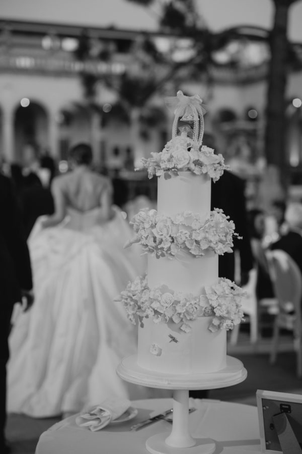 It emphasized Julie’s famous sugar florals and featured the topper from Alyssa’s Parents’ wedding cake, which is now forty years old!
