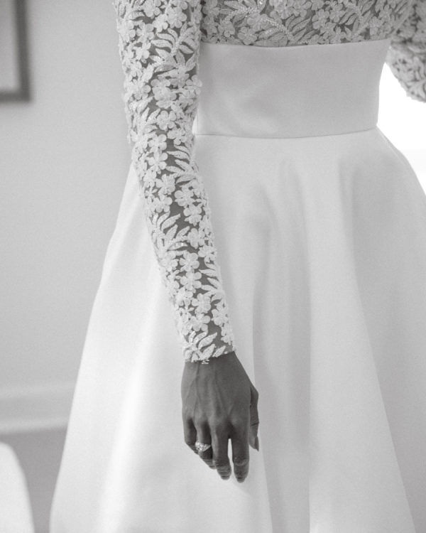 When it came to selecting the perfect gown, Symone had a specific vision in mind– a ballgown that celebrates the beauty of southern elegance but with a modern spin! After a little light research, she found a gown by designer Rita Vinieris that checked all of the boxes! When it came to trying this specific dress on, there was only 1 in the entire state, and it happened to be a 15-minute drive from her home! It was fate! In order to make sure she wasn’t missing anything else, she tried on 3 other dress styles, but nothing spoke to her. The Rita Vinieris ball gown was the 4th dress she put on, and she instantly knew it was the one!