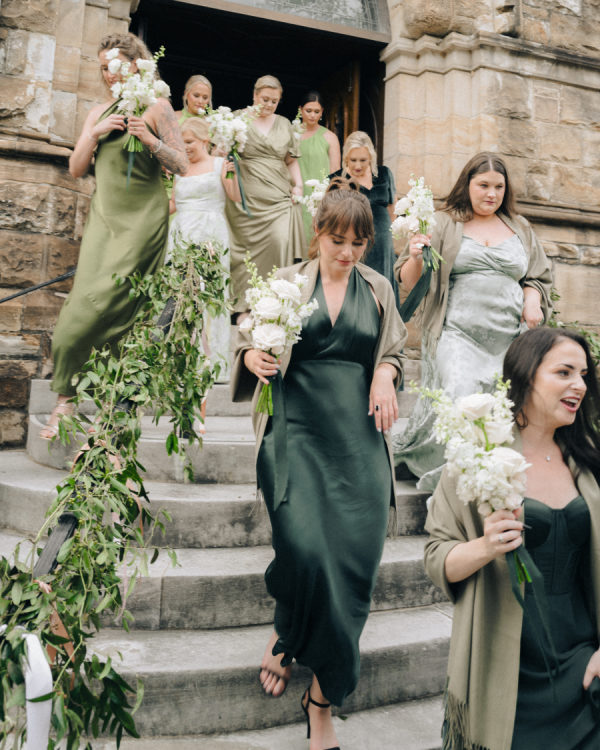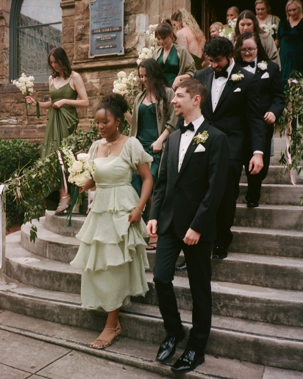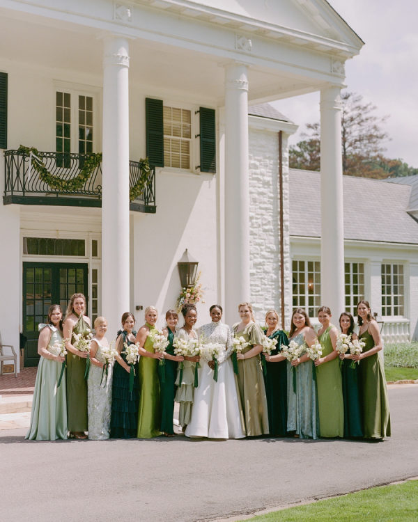 The bridesmaids each wore a gown of their choosing! It was important to Symone that everyone felt comfortable, beautiful, and didn’t break the bank for a dress they won’t wear again. The only requirement was that it had to be floor-length and a shade of green!