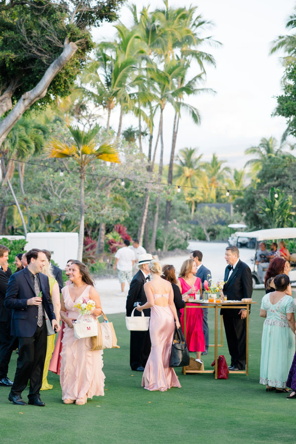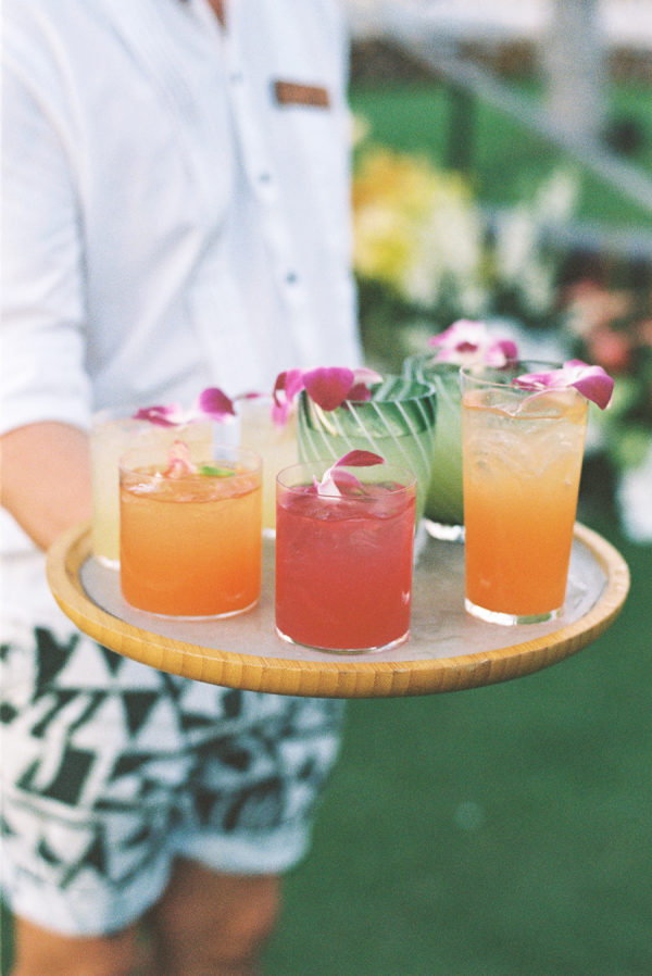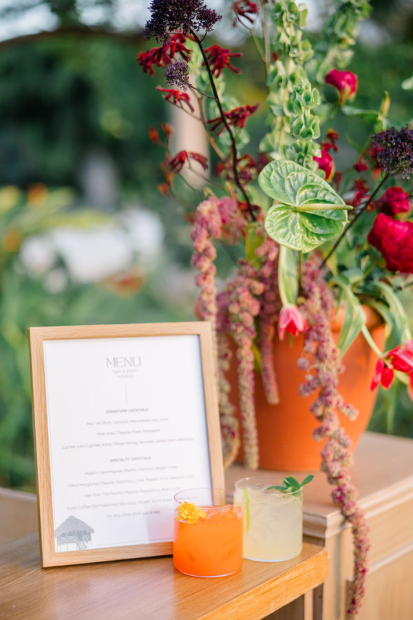 Throughout the weekend, we offered guests a mix of local-fusion cuisine from land to sea. Kalua pork stations, ceviche shooters, local fish, and a malasadas bar were some of our favorite selections. We got to work with the amazing culinary team at Kona Village to curate a menu that spoke to our own tastes while indulging our guests in a fun culinary experience. The signature cocktails were refreshing, light, and reflective of our favorite go-to drinks – the Hula Hula (tequila with fresh pineapple) and the Kona Coffee Old Fashioned.
