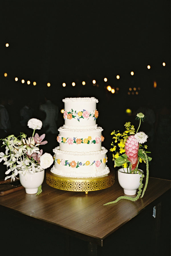 We had a delicious brown sugar cake with lilikoi filling, decorated with sunset colored flowers to match our ceremony!