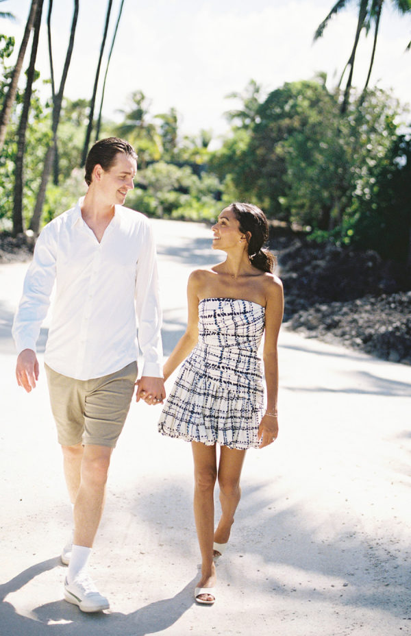 Over the years, I told Ryan about some of my favorite childhood memories that took place at Kona Village and how bummed I was when the resort shut down in 2011 due to a tsunami. Coincidentally, the reopening of the hotel happened around the same time as our dating anniversary. We took a trip to Hawaii to celebrate, and I was surprised with a beautiful and nostalgic proposal dinner with all my favorite foods, including the “Cookie Monster Milkshake” I used to have with my cousins after lunch at the old Kona Village.
