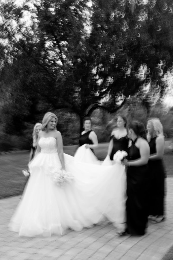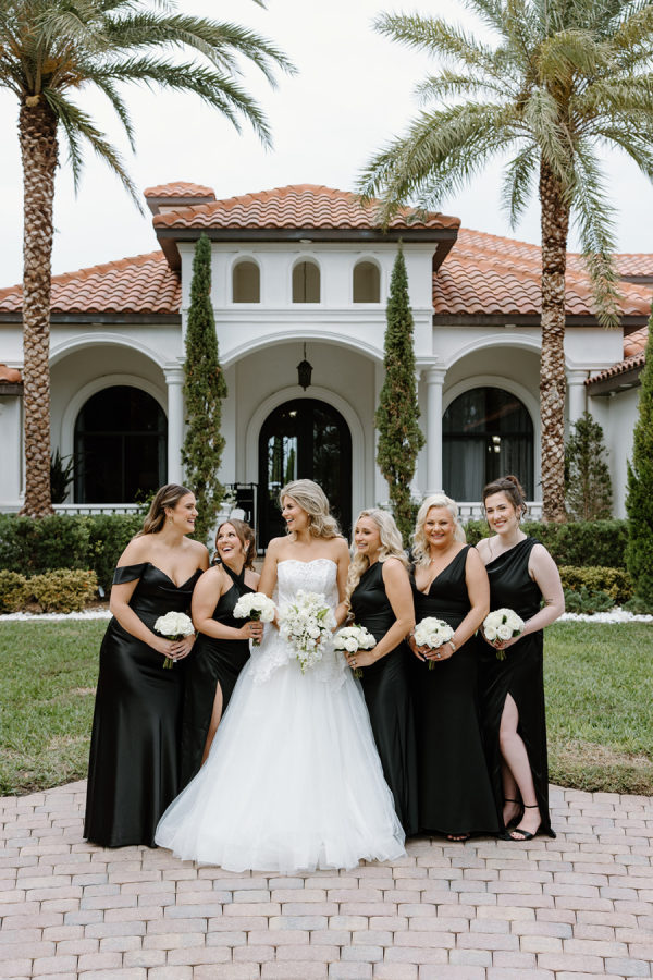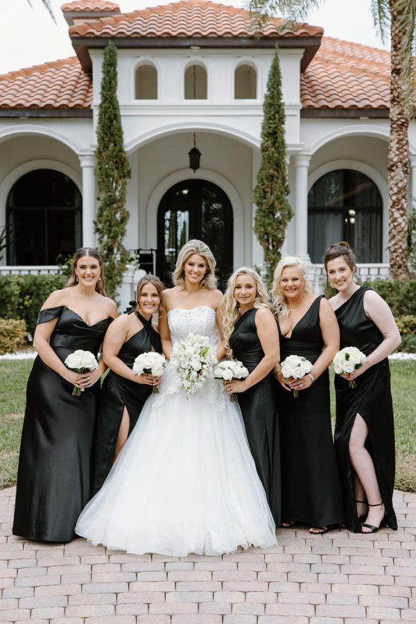 I wanted my bridesmaids to feel as confident as possible in what they wore, so I told them to wear whatever dress they wanted as long as it was black, satin, and floor-length. I felt that having them in black also allowed them to stand out from the rest of the guests and gave a classic look.