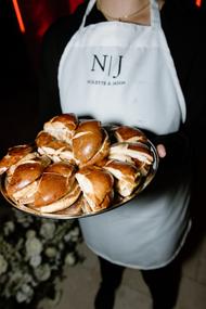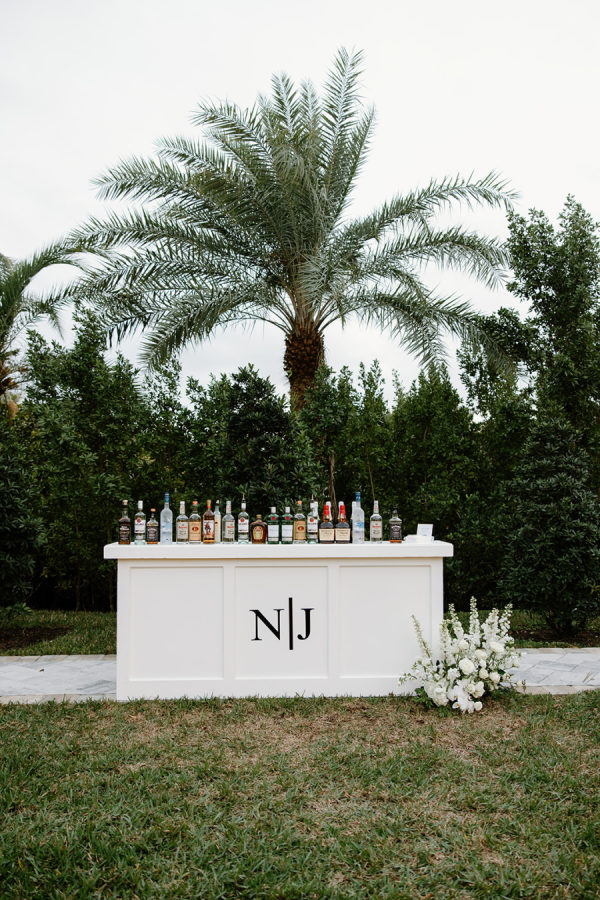 Monogram on bars and aprons, I really tried to keep our decor all the same throughout our wedding. From our save-the-dates to welcome bags to menus on the tables, everything had the same font and monogram. I really wanted to have our monogram on the bars, and when speaking with Karen, our planner, she mentioned adding aprons with our monogram on them for the staff helping with dinner service. As soon as she said it, I knew we had to do it as well. I’m so glad we did because it was so fun to see everyone wearing our initials. It was a small detail that really added a lot to the overall feel and look of the wedding. The staff had a lot of fun wearing them, too!