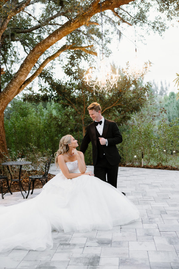 We met during COVID at a house party right after I moved to a new city and didn’t know anyone. We started talking about the Tampa Bay Rays and Tampa Bay Buccaneers, and the rest is history! Jason planned a surprise trip for us to go to Costa Rica. The only things I knew about the trip were when we were going, the country we were going to, and what to pack. He took care of planning activities like horseback riding through the rain forest and a couple’s spa afternoon. On the second night of our trip, we went to dinner on a mountain overlooking the Pacific Ocean. We went to look at a family of monkeys near the railing, and he pulled me away. I was confused and thought he wanted to dance with me, but he got on one knee and proposed. I had no idea he was going to do it!