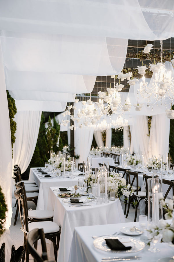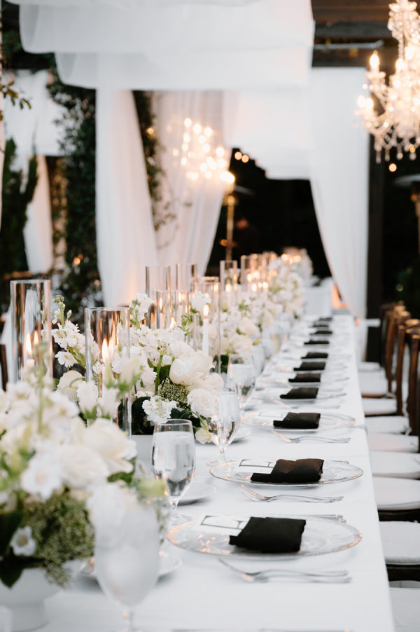I had a specific look I wanted for the venue, and when I saw La Casa Toscana, I knew it was exactly the look! I asked our friends and family to dress in “colorful black tie” and they did not disappoint! Everyone at our wedding is truly the color of our life, and I thought having white and black decor accents would really let them shine.