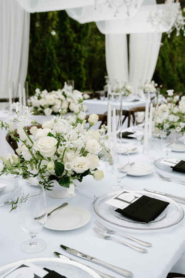 From the bride: My vision for our wedding was timeless and elegant, where you could feel the love Jason and I have for each other. I picked our wedding colors as black and white because I wanted the venue and our family friends to be the focus.
