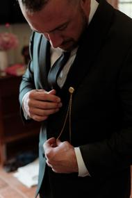 [field title=”Groomsman Attire”]The groom’s attire was by Oliver Wicks and gold cufflinks shaped like the fleur-de-lis, the iconic symbol of Florence.[/field]