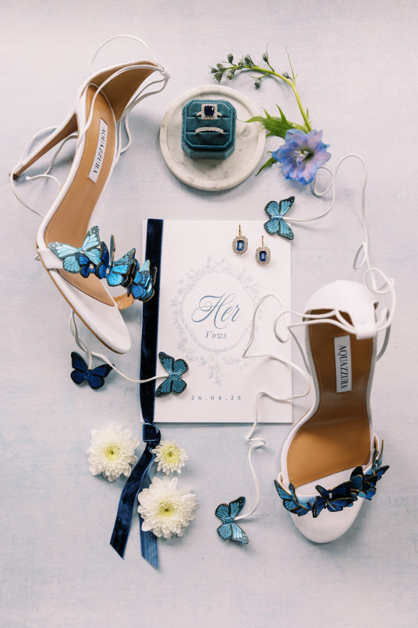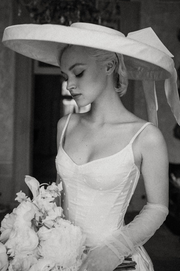 The bride wore a Kamelia Andrioti wedding gown, a masterpiece of modern bridal fashion – a perfect balance between ageless romance and contemporary edge. Instead of the traditional “princess gown”, she wore a piece that felt artistic and bold, while still undeniably romantic. To complete her bridal look, our bride chose a sculptural, statement hat. Dramatic yet timeless, the piece framed her look with effortless sophistication, blending high-fashion elegance with a sense of individuality and modern romance. The whole look was a perfect reflection of a woman rewriting tradition with grace, strength, and unfading beauty.