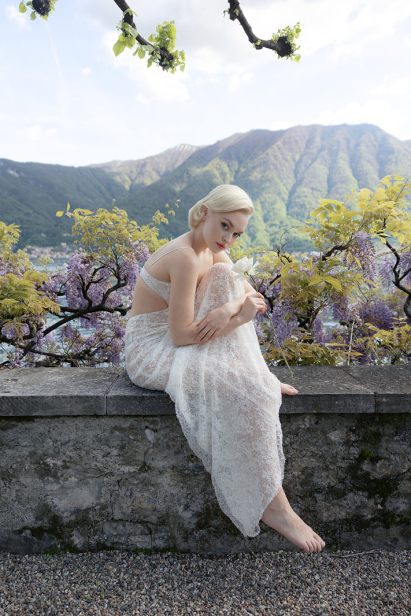 At the breathtaking Villa Balbiano, nestled on the serene shores of Lake Como, we brought to life a vision as timeless as the landscape itself. Our beautiful couple dreamt of an intimate wedding that felt like a whisper in the clouds – soft, ethereal and effortlessly elegant. The ceremony mirrored the sky above, with layers of white florals and delicate textures, floating like a cloud over the lake. After the ceremony, the guests were invited to unwind with sunset cocktails by the pool -spritzes in hand, soft Italian jazz floating through the air, and golden hour casting magic on the villa. As the sun dipped behind the hills of Lake Como, guests made their way into Villa Balbiano’s enchanting cherry tree garden – a hidden gem that set the stage for a dinner party, intimate yet grand. At the heart of it all was a long, serpentine table, winding gracefully through the trees like a ribbon of celebration. Its curves weren’t just beautiful, they symbolized the journey of love : fluid, continuous and ever-evolving.