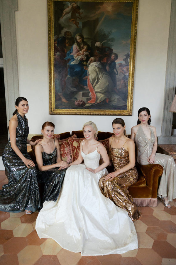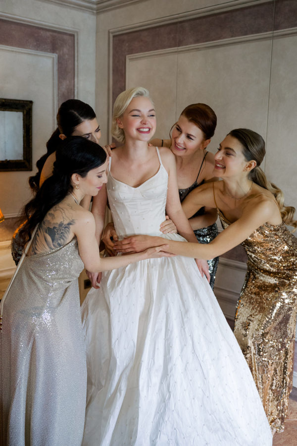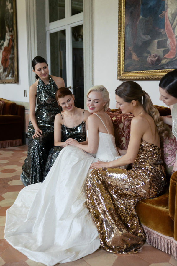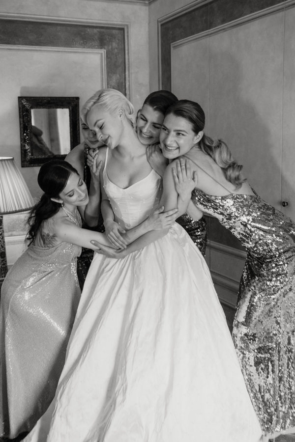 The bridesmaids’ fashion was a celebration of bold elegance and timeless glamour. They chose sequins- the ultimate symbol of enduring style – in a striking combination of gold and silver, creating a look that shimmered with sophistication. Rather than all wearing the same dress, each gown was tailored slightly differently to reflect each bridesmaid’s unique connection to the bride, adding a personal and heartfelt touch to the cohesive, dazzling ensemble.