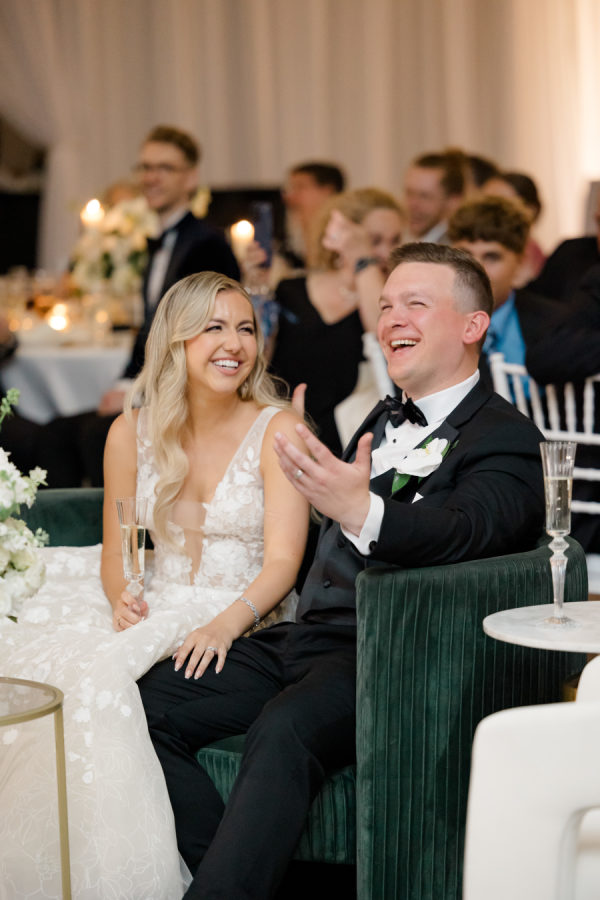 “A Wisconsin-Style Dance Party.” The band kept the energy sky-high all night long, but it was the late-night snacks that truly brought the house down. In a nostalgic and heartfelt nod to Grant’s Wisconsin roots, guests were treated to crispy cheese curds and hot dogs, comfort food that hit just right after hours of dancing. It was the perfect pairing of fun and flavor, blending Midwest charm with elegance and making guests feel right at home as they celebrated on the dance floor.