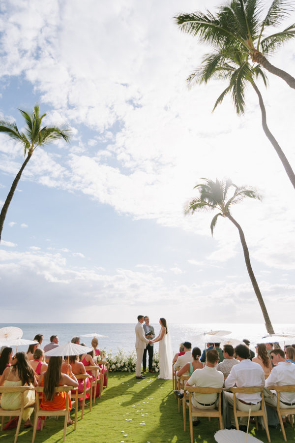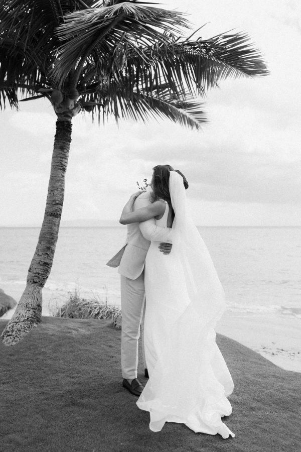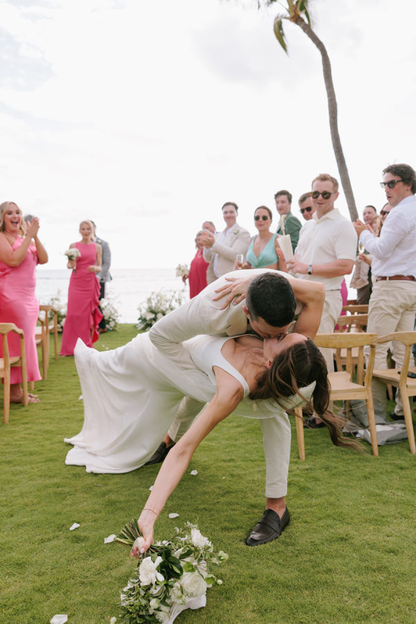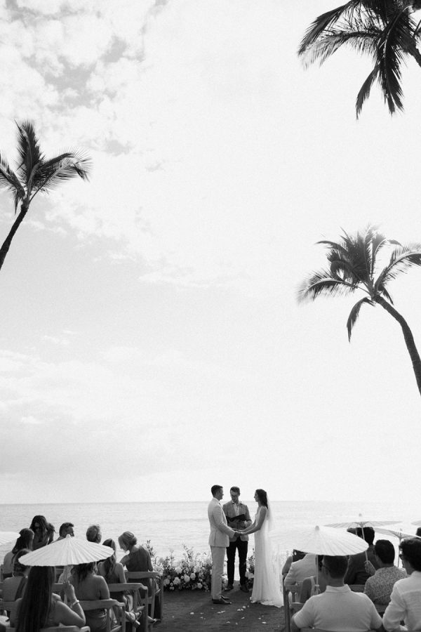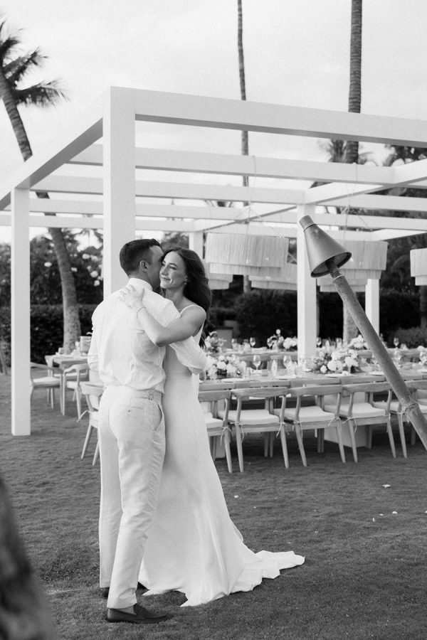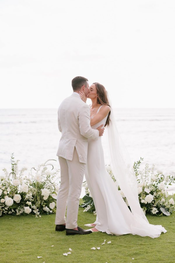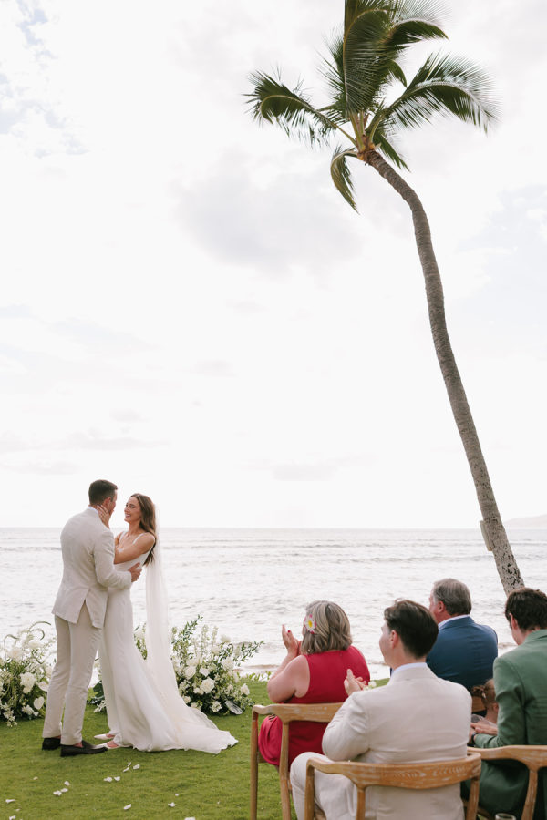 The vision for Arden and Pierce’s day was all about effortless elegance — chic, minimal, and deeply connected to the natural beauty of Hawaii. They wanted their wedding to feel timeless, with a design that was modern yet grounded, letting the stunning island landscape speak for itself. From the soft neutral palette to the clean, refined details, everything was chosen with intention. Nothing felt overdone or overly styled. Instead, a quiet sophistication was woven through every element — from the floral design to the tablescape — highlighting the textures and tones of the island in a subtle, elevated way. Though they live in Canada, they chose to celebrate in Kihei, Hawaii, at Arden’s family home. The house had just finished renovations in time for the big day, making the setting all the more special — a perfect backdrop for a celebration grounded in love, connection, and a deep appreciation for nature. They invited about 45 of their closest loved ones, creating a day that was both meaningful and beautifully put together. The celebration had a thoughtful elegance that felt true to them, filled with genuine moments and the easy comfort of being surrounded by people who truly matter. Every detail reflected their calm, graceful style, set against a backdrop that now holds even more meaning in their love story.