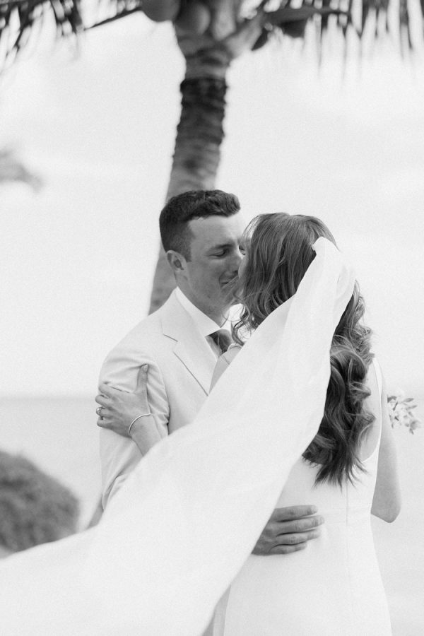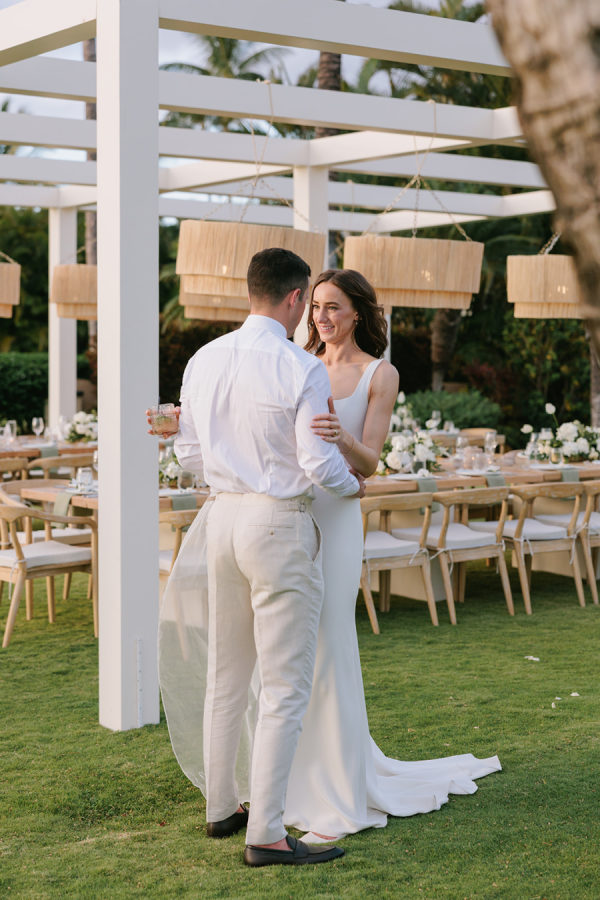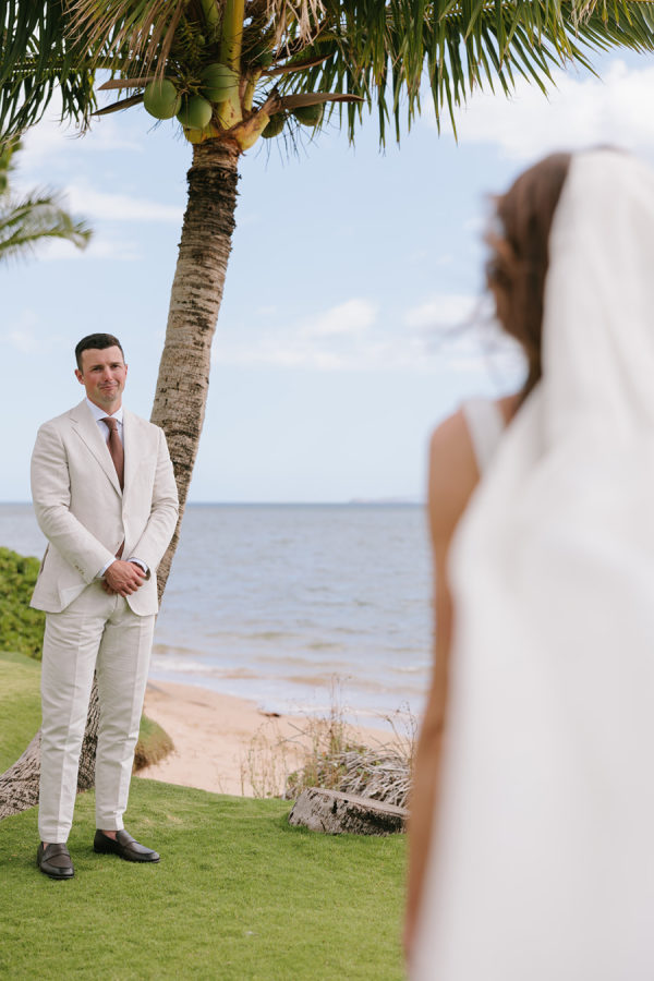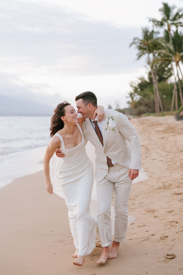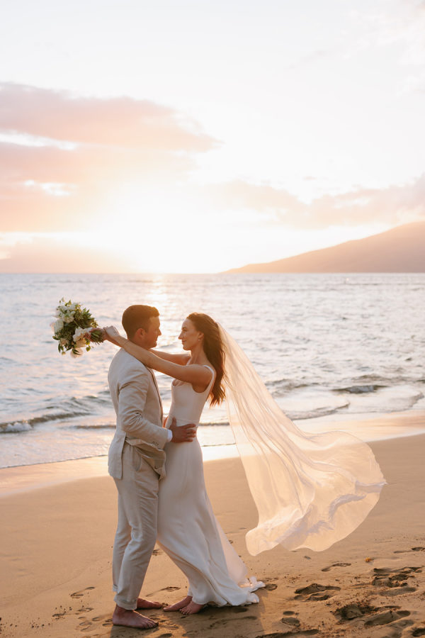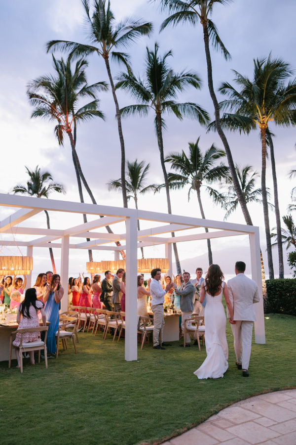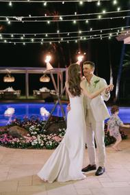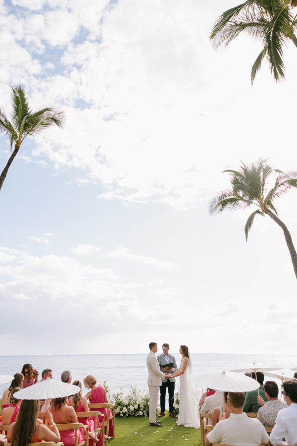 The vision for Arden and Pierce’s day was all about effortless elegance — chic, minimal, and deeply connected to the natural beauty of Hawaii. They wanted their wedding to feel timeless, with a design that was modern yet grounded, letting the stunning island landscape speak for itself. From the soft neutral palette to the clean, refined details, everything was chosen with intention. Nothing felt overdone or overly styled. Instead, a quiet sophistication was woven through every element — from the floral design to the tablescape — highlighting the textures and tones of the island in a subtle, elevated way. Though they live in Canada, they chose to celebrate in Kihei, Hawaii, at Arden’s family home. The house had just finished renovations in time for the big day, making the setting all the more special — a perfect backdrop for a celebration grounded in love, connection, and a deep appreciation for nature. They invited about 45 of their closest loved ones, creating a day that was both meaningful and beautifully put together. The celebration had a thoughtful elegance that felt true to them, filled with genuine moments and the easy comfort of being surrounded by people who truly matter. Every detail reflected their calm, graceful style, set against a backdrop that now holds even more meaning in their love story.