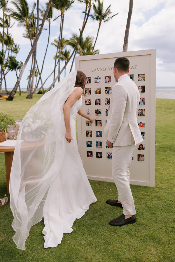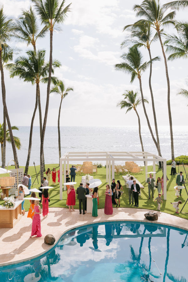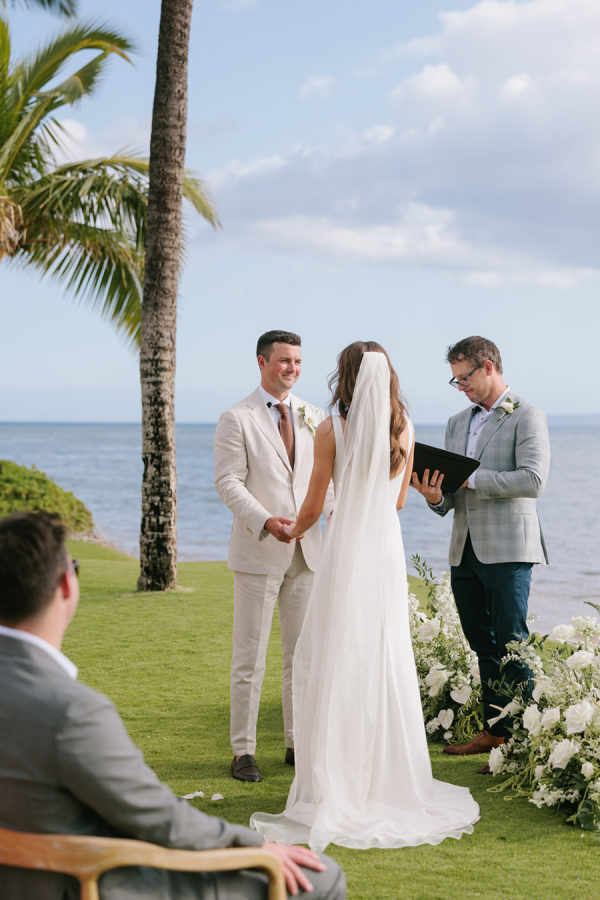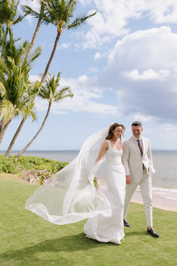 Photography: Melia Lucida, Photographer | Cinematography: Rem Films Hawaii | Event Planning & Design: Love Struck & Co. | Floral Design: Teresa Sena Designs | Wedding Dress: Alexandra Grecco | Invitations: Minted Weddings | Catering: Cutting Edge Catering | DJ: Maui Wedding DJ | Groom’s Attire: Suitsupply | Beauty: Meili Autumn Beauty | Bridal Veil: Ouma Couture | Content Creation: Maui Social Media BT | Linen: BBJ La Tavola | Location: Private Residence – Maui, Hawaii | Oysters: Oysters Hawaii | Rentals: Artisan Events Maui LLC | Rentals: Rio Event Design | Signage: Miss B Calligraphy