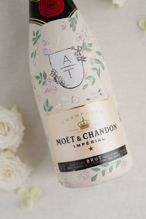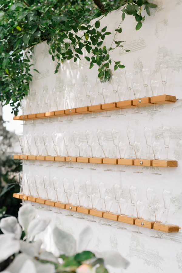Catering and bar service were provided by Roche Harbor Resort, known for its exceptional Pacific Northwest cuisine. Signature cocktail featuring their famous Great Dane Bruce (as the Brucerita) added a fun personal touch to the celebration, while guests enjoyed a curated dining experience that emphasized seasonal flavors. Champagne was served from a statement champagne wall provided by Pennies Rentals — both a design element and a crowd favorite. The champagne wall was lined with a custom toile pattern that featured important things to Taryn and Alec: The Empire State building – the view they see from their NYC apartment, peonies, which Taryn and her mom grew in their garden together growing up, Roche Harbor, their wedding venue, a ferry as a nod to Alec’s Anacortes roots and the iconic way all their guests arrived at the wedding,. and monogram thoughtfully designed by Honest Calligraphy, featuring clean lines but a romantic touch of florals.