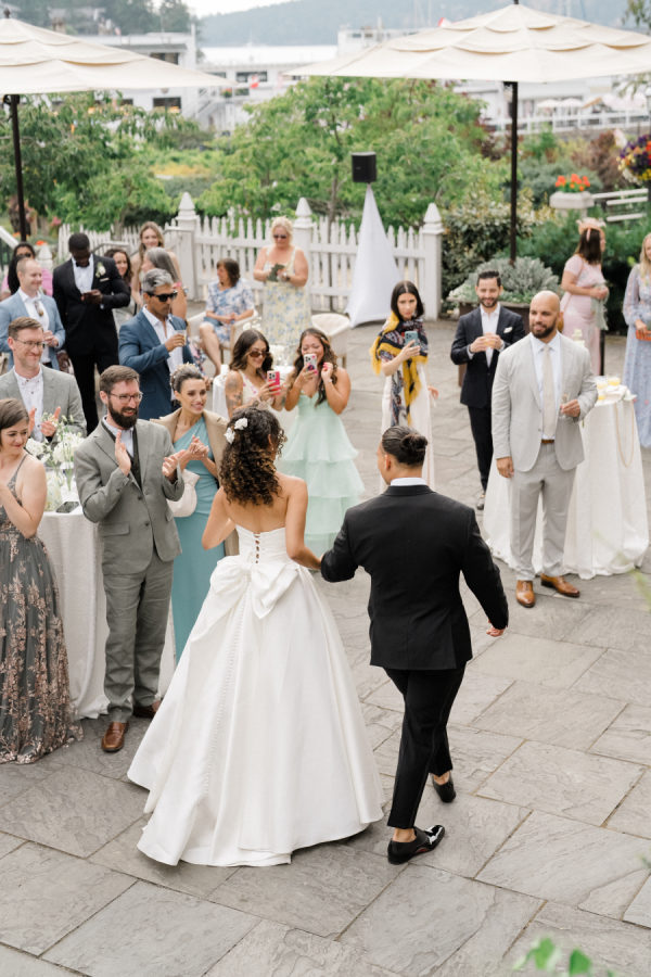 Photography: Janet Lin Photography | Event Planning: Events by Genevieve | Floral Design: Emerald City Flowers | Wedding Dress: Kleinfeld Bridal | Cake: Nothing Bundt Cakes | Invitations: Honest Calligraphy | Bridesmaids’ Dresses: Birdy Grey | Groom’s Attire: Robbie’s Suits NYC | AV: Insaiyan Entertainment | Electric Cellist: Gretchen Yanover | Location: Roche Harbor Resort | Painted perfume and champagne bottle: Sarah Bate | Pianist: Aaron Buckner | Rentals: Noble Event Rentals | Rentals: Vintage Ambiance | Rentals: BBJ La Tavola | Rentals: Cort Party Rentals | Rentals: Pennie’s Rentals | Rentals: On the Wall Design Studio | Weddings Rings: Christi Sothers