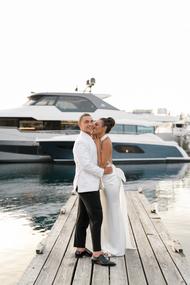 Set in a garden overlooking the harbor, the ceremony was serene and deeply personal. The bride made her entrance to a live rendition of I Will Always Love You, arranged and performed on piano by Aaron Buckner — an emotional and unforgettable moment. The couple exchanged written vows to each other; some of the most heartfelt and moving vows we have had the pleasure of witnessing. The backdrop was simple yet elegant, allowing the natural beauty of the setting and the emotional weight of the moment to take full presence.