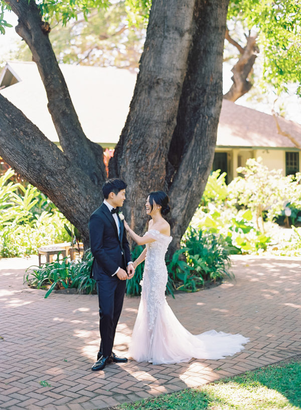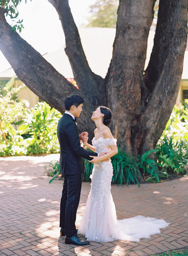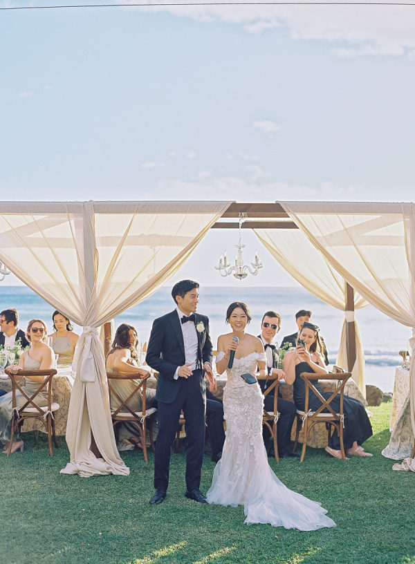 Photography: Dmitri and Sandra Photography | Cinematography: Gali Productions | Event Planning: Taryn Stark Wyant Event Planning and Design | Floral Design: The Floralette | Wedding Dress: Dany Tabet | Invitations: Kattone | Catering: Food For The Soul | DJ: Maui DJ Services | Bar Service: Stir Beverage | Beauty: Meili Autumn Beauty | Coco Station: The Catered Coconut | Custom Signs: Miss B Calligraphy | Dessert: Maui Bakeyard | Live Music: Josh Kahula | Reception Dress: Sau Lee | Rentals: Nuage Designs | Rentals: Let’s Entertain Maui