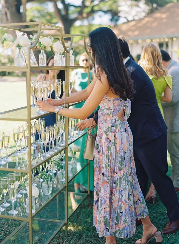 Guests were welcomed with glasses of champagne as they arrived, elegantly displayed on golden shelves — a glamorous touch that set the tone for the evening. And in a delightful twist, The Catered Coconut treated guests to freshly chopped coconuts served on the spot, blending island tradition with refreshing fun.[/field]