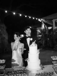 [field title=”Wedding Cake”]The couple shared a private moment cutting their striking three-tier cake, surrounded by a decadent dessert spread that had guests swooning. Each treat, created by the Andaz Maui’s celebrated pastry team, was a nod to indulgence and celebration — a delicious finale before the night kicked into party mode.[/field]