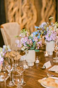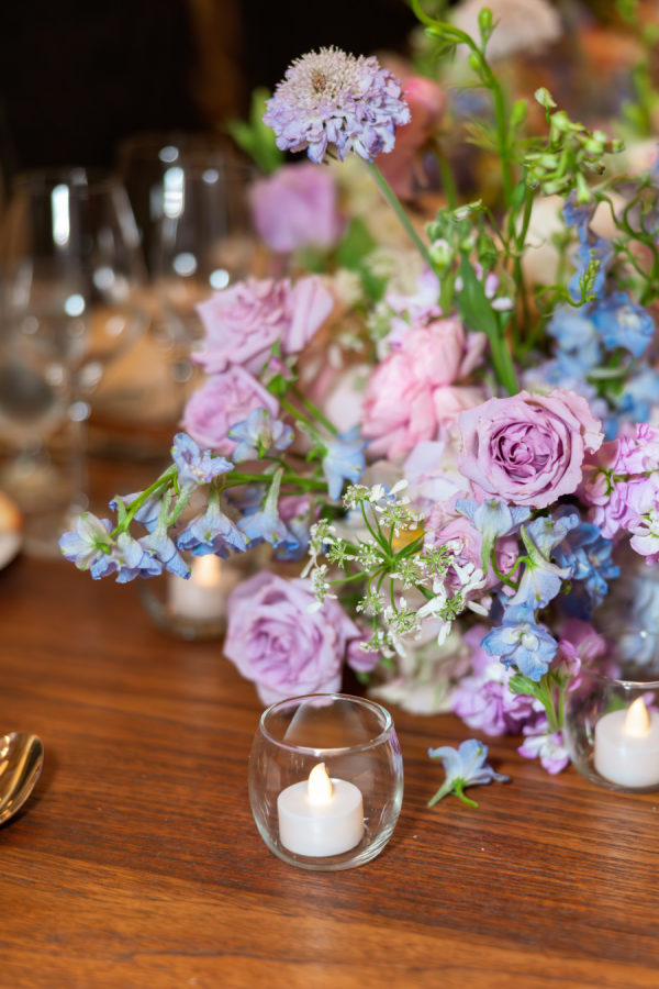 Lilac served as the primary hue, softened by accents of peach, dusty rose, and warm blush. A beautiful gradient of blue—from delicate sky blue to moody dusty blue—added depth, while soft ivory and touches of greenery grounded the palette. The overall look was pastel, painterly, and dreamlike, reminiscent of a Monet watercolor.